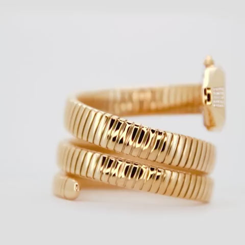 The matching yellow gold IP plated stainless steel band gracefully secures this exquisite accessory, ensuring both comfort and style. Driven by a reliable SEIKO VJ20 Quartz movement, this watch offers precise timekeeping. Designed to be water-resistant, it combines durability with high fashion.
