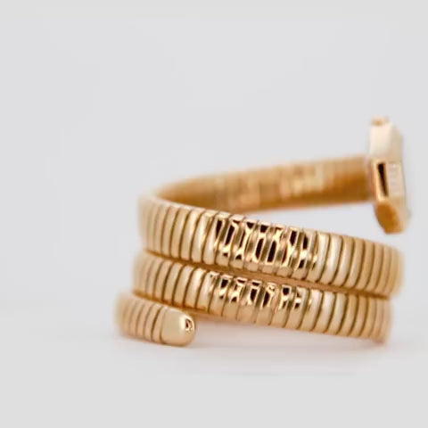 Ideal for those who embrace a unique blend of glamour and edge, this Just Cavalli snake watch is more than just a time-teller, it's a reflection of audacious luxury. Each Just Cavalli Romina watch comes presented in the elegant 'Ladies Give Me Magic Box' packaging, perfect for gifting or personal indulgence. Elevate your style with this breathtaking yellow gold and green women's watch that echoes the allure of high fashion. Shop this must-have fashion accessory now at Watchello.com.