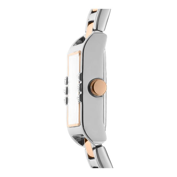 W sercu miejskiej elegancji, gdzie światła miasta tańczą z gwiazdami, pojawia się zegarek, który uchwyca istotę nowoczesnej wyrafinowania. DKNY DK1L008 Westside Glitz to świadectwo bezproblemowego połączenia mody i funkcji, zaprojektowany dla współczesnej kobiety, która porusza się przez życie z gracją i stylem. Jego prostokątna koperta, skąpana w eleganckim srebrno-szarym kolorze, emanuje wyrafinowanym designem, który odzwierciedla minimalistyczną, a jednocześnie odważną estetykę metropolii. Niebieska tarcza przypominająca zmierzchowe niebo dodaje nutę tajemniczości i uroku, podczas gdy wyświetlacz z trzema wskazówkami zapewnia precyzję w każdej chwili. Wykonany z bransoletą ze stali nierdzewnej, która odzwierciedla srebrno-szary odcień koperty, ten zegarek otula nadgarstek zapięciem motylkowym, oferując zarówno bezpieczeństwo, jak i elegancję. Mineralne szkło chroni tarczę, zapewniając klarowność i trwałość, podczas gdy koronka typu pull & push umożliwia łatwe regulacje. Wodoodporny, ten zegarek jest gotowy towarzyszyć Ci przez deszcz i słońce, ucieleśniając ducha odporności. Napędzany mechanizmem kwarcowym, obiecuje niezawodność i dokładność, czyniąc go niezbędnym towarzyszem dla kobiety ceniącej zarówno styl, jak i substancję. DKNY Westside Glitz to nie tylko zegarek, to manifest wyrafinowania, odzwierciedlenie żywej energii miasta i celebracja ponadczasowego uroku zmierzchu.