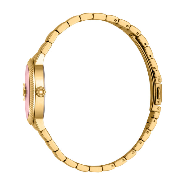 W świecie mody, gdzie elegancja spotyka się z odwagą, pojawia się zegarek, który uchwyca istotę blasku i wyrafinowania. Ten Just Cavalli Watch, z prestiżowej kolekcji Just Cavalli Glam Chic, jest świadectwem wyrafinowanego designu i doskonałego rzemiosła. Wykonany w okrągłym kształcie, koperta lśni luksusowym odcieniem żółtego złota, doskonale uzupełniając stalową bransoletę, która owija nadgarstek złotym urokiem. Składane zapięcie z przyciskiem zapewnia idealne dopasowanie, dodając nowoczesnej wygody do klasycznego uroku. W sercu tego zegarka znajduje się żywa różowa tarcza, odważne wyrażenie stylu, które rezonuje z pop-artowym zacięciem, czyniąc go przyciągającym wzrok dodatkiem dla modnej kobiety. Kryształ mineralny chroni tarczę, podczas gdy koronka typu pull & push ułatwia regulację. Z kopertą o średnicy 32 mm, zegarek jest zaprojektowany tak, aby być zarówno delikatny, jak i uderzający, ucieleśniając ducha kobiecości i siły. Napędzany precyzyjnym mechanizmem kwarcowym, obiecuje niezawodność i dokładność, podczas gdy wyświetlacz z trzema wskazówkami mierzy czas z gracją. Wodoodporny do 50 metrów, jest tak wszechstronny, jak piękny, gotowy towarzyszyć Ci od tętniących życiem ulic miasta po spokojne nadmorskie wypady. Ważący zaledwie 83 gramy, leży lekko na nadgarstku, a jednak jego obecność jest niezaprzeczalnie odważna. Ten Just Cavalli Watch to nie tylko zegarek, to wyraz stylu, celebracja indywidualności i odzwierciedlenie śmiałego ducha, który definiuje nowoczesną kobietę.