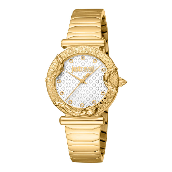 W świecie mody, gdzie elegancja spotyka się z odwagą, pojawia się zegarek, który uchwyca istotę wyrafinowania i stylu. Wykonany w sercu szwajcarskiego zegarmistrzostwa, ten Just Cavalli Watch z kolekcji Animalier jest świadectwem zaangażowania marki w odważny design i wyśmienite rzemiosło. Okrągła koperta, skąpana w luksusowym odcieniu żółtego złota, emanuje poczuciem przepychu i wielkości, doskonale uzupełniając wyrafinowany design zegarka. Z średnicą koperty 32 mm, leży z gracją na nadgarstku, czyniąc go idealnym dodatkiem dla nowoczesnej kobiety, która ceni zarówno modę, jak i funkcjonalność. Bransoleta ze stali nierdzewnej, również w dopasowanym odcieniu żółtego złota, dodaje nutę ponadczasowej elegancji, zabezpieczona zapięciem motylkowym z przyciskiem dla wygody i komfortu. Srebrno-szara tarcza, będąca płótnem subtelnej wyrafinowania, ozdobiona jest trzema wskazówkami napędzanymi precyzyjnym mechanizmem kwarcowym, zapewniającym dokładne odmierzanie czasu. Wodoodporność do 50 metrów sprawia, że ten zegarek jest tak samo praktyczny, jak stylowy, gotowy towarzyszyć Ci w życiowych przygodach. Kryształ mineralny dodaje warstwę trwałości, chroniąc tarczę przy zachowaniu przejrzystości. Ten Just Cavalli Watch to nie tylko zegarek, to wyraz charakteru i odwagi, odzwierciedlenie unikalnego stylu i pewności siebie noszącej go osoby.
