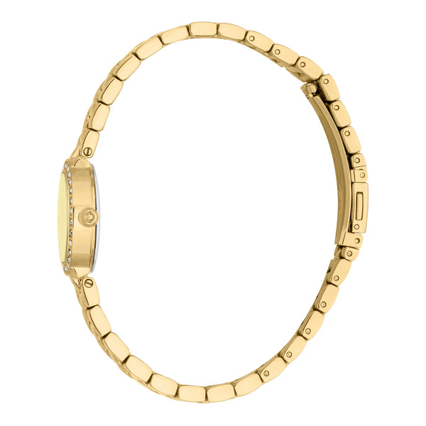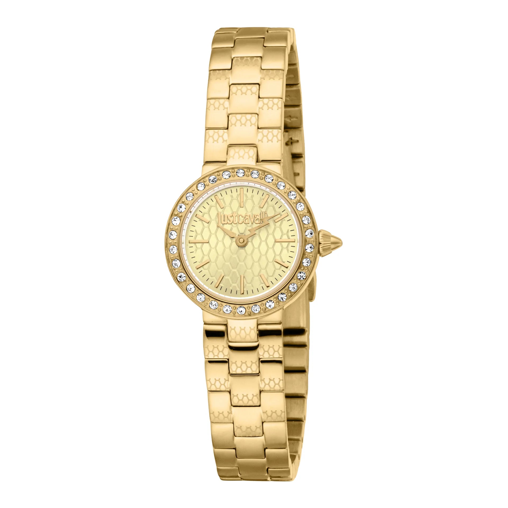 W świecie mody, gdzie elegancja spotyka się z odwagą, pojawia się zegarek, który uchwyca istotę wyrafinowania i stylu. Wykonany w sercu szwajcarskiego zegarmistrzostwa, ten Just Cavalli Watch z kolekcji Glam Chic jest świadectwem wyrafinowanego designu i doskonałego rzemiosła. Jego okrągła koperta, skąpana w ciepłym blasku żółtego złota, ma delikatne 23 mm, co czyni go idealnym towarzyszem nowoczesnej kobiety ceniącej zarówno grację, jak i funkcjonalność. Tarcza w kolorze szampana, przypominająca złoty zachód słońca, dodaje odrobinę przepychu, podczas gdy dwuwskazówkowy mechanizm kwarcowy zapewnia precyzję i niezawodność. Kryształ mineralny chroni tarczę, oferując klarowność i trwałość, a koronka typu pull & push ułatwia regulację. Bransoleta ze stali nierdzewnej, również w żółtym złocie, owija nadgarstek z poczuciem luksusu, zabezpieczona składanym zapięciem motylkowym z przyciskiem dla większej wygody. Z wodoodpornością do 50 metrów, ten zegarek to nie tylko modny dodatek, ale wszechstronny akcesorium na każdą okazję. Jego lśniąca obecność i elegancki design sprawiają, że jest to must-have dla tych, którzy odważają się wyróżniać, ucieleśniając ducha odważnej i szykownej estetyki Just Cavalli.