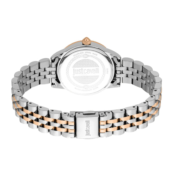 Zegarek Lovestruck Valentines w kolorze różowego złota to promienny wyraz nowoczesnego luksusu. Jego pasek ze stali nierdzewnej i dopasowana tarcza tworzą spójny wygląd, podczas gdy motylkowe zapięcie zapewnia komfort. Wodoodporny i wykonany z kryształu mineralnego, ucieleśnia szyk Just Cavalli.