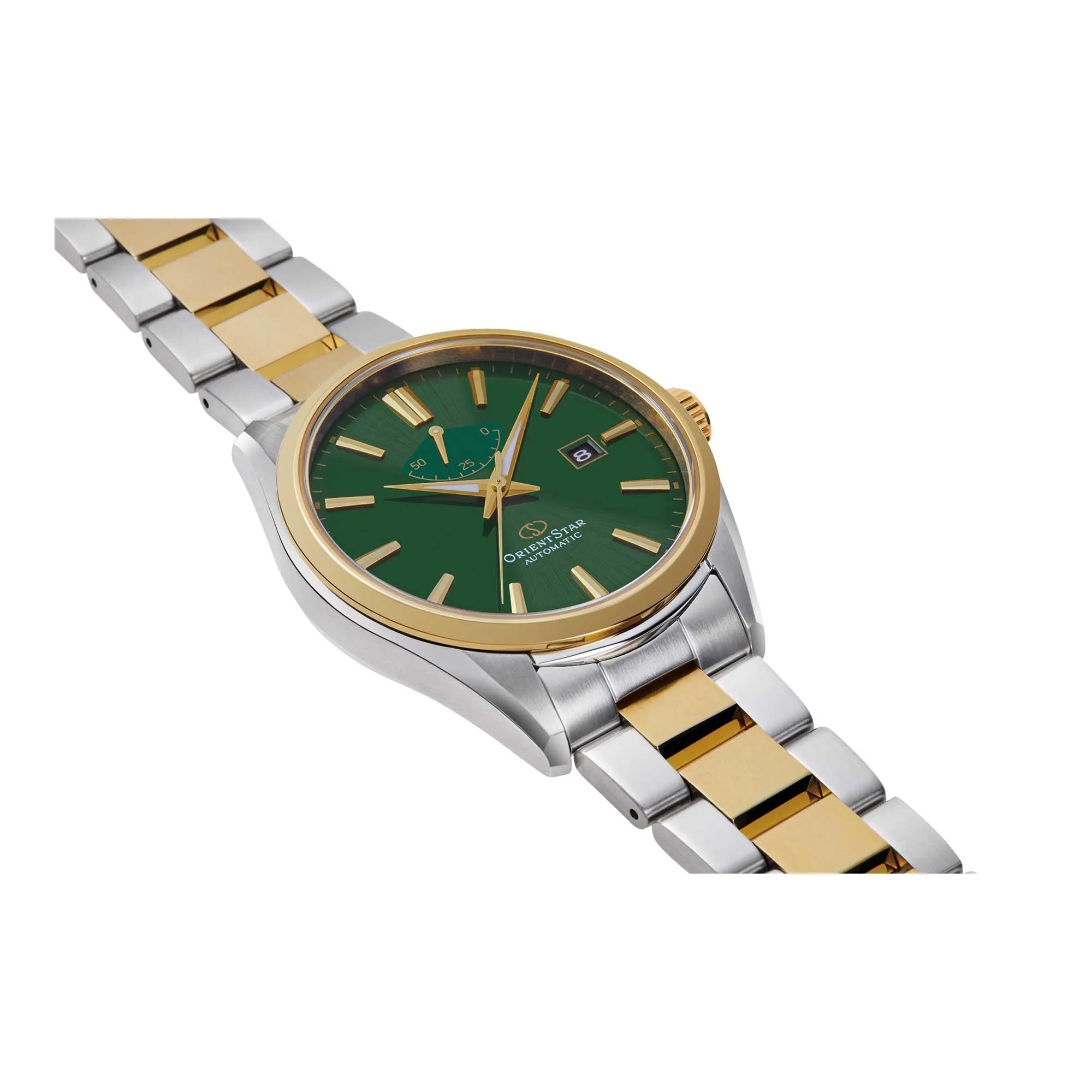 At its heart lies the precise in-house Orient F6N43 mechanical automatic movement, boasting 22 jewels, hand-winding capability, hacking seconds, and an impressive power reserve indicator prominently displayed on its captivating green dial. With a daily accuracy of +25/-15 seconds, you can trust its reliability and precision.