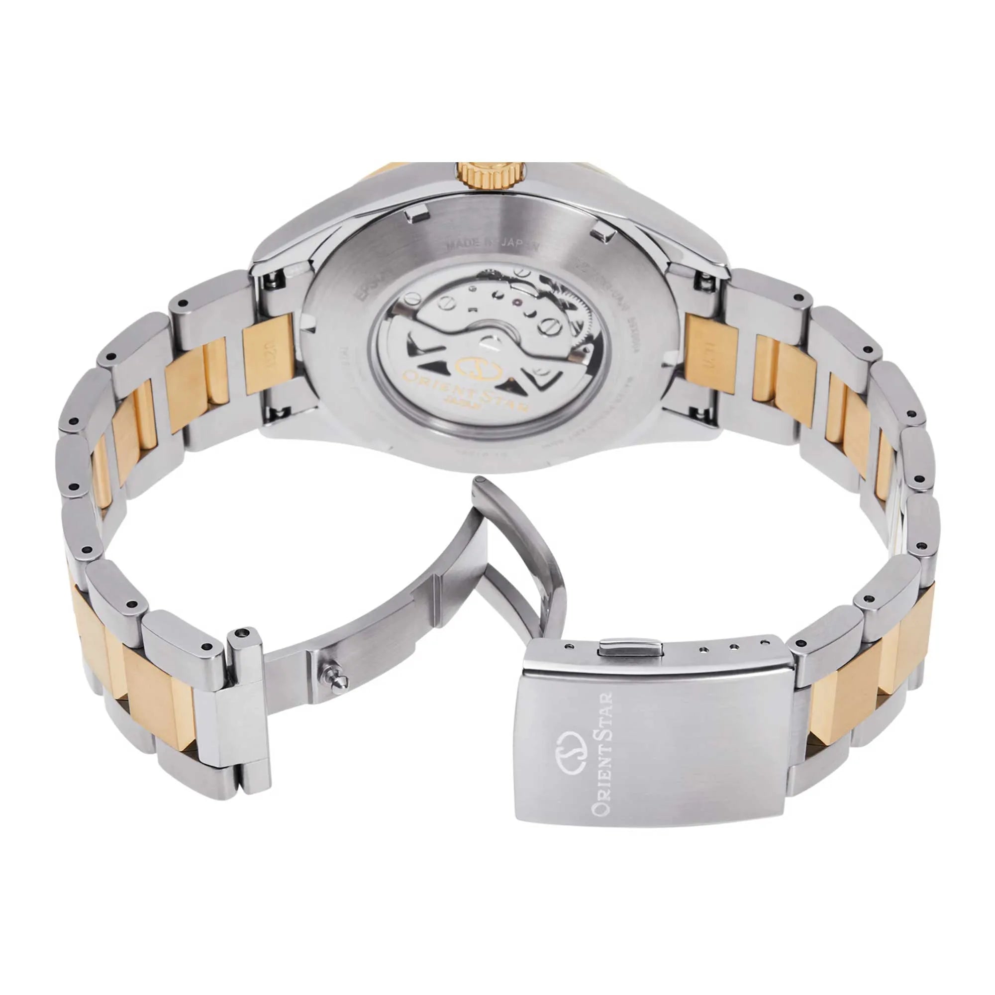 Turn the watch over to admire the intricate mechanics through its transparent screw-down case back – a testament to Orient Star's unwavering commitment to horological artistry. This robust timepiece offers practical daily wear with 50 meters of water resistance (WR 50mt), making it suitable for light splashes and everyday use.