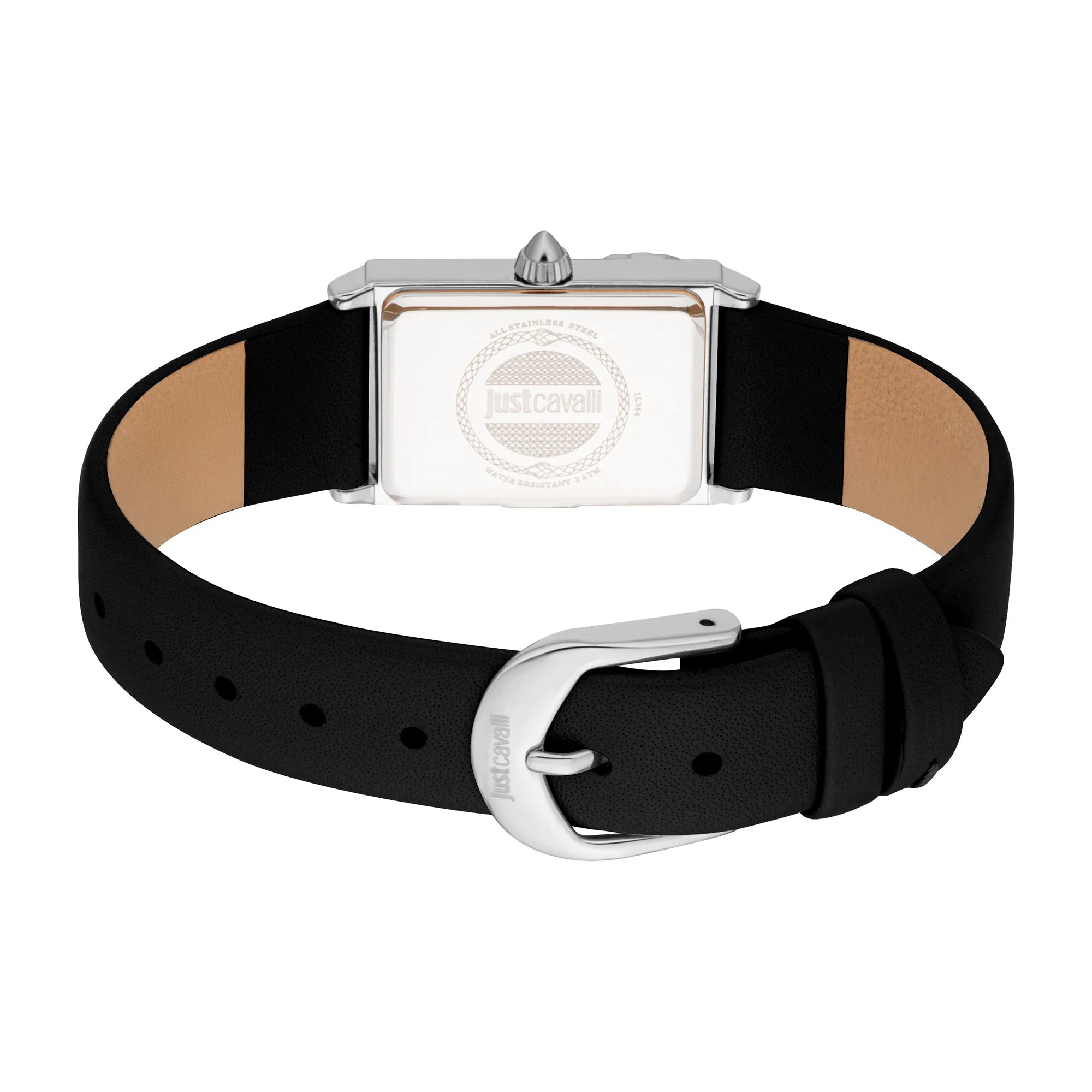 Just Cavalli Animalier Dolcezza Skórzany wąż czarny srebrny