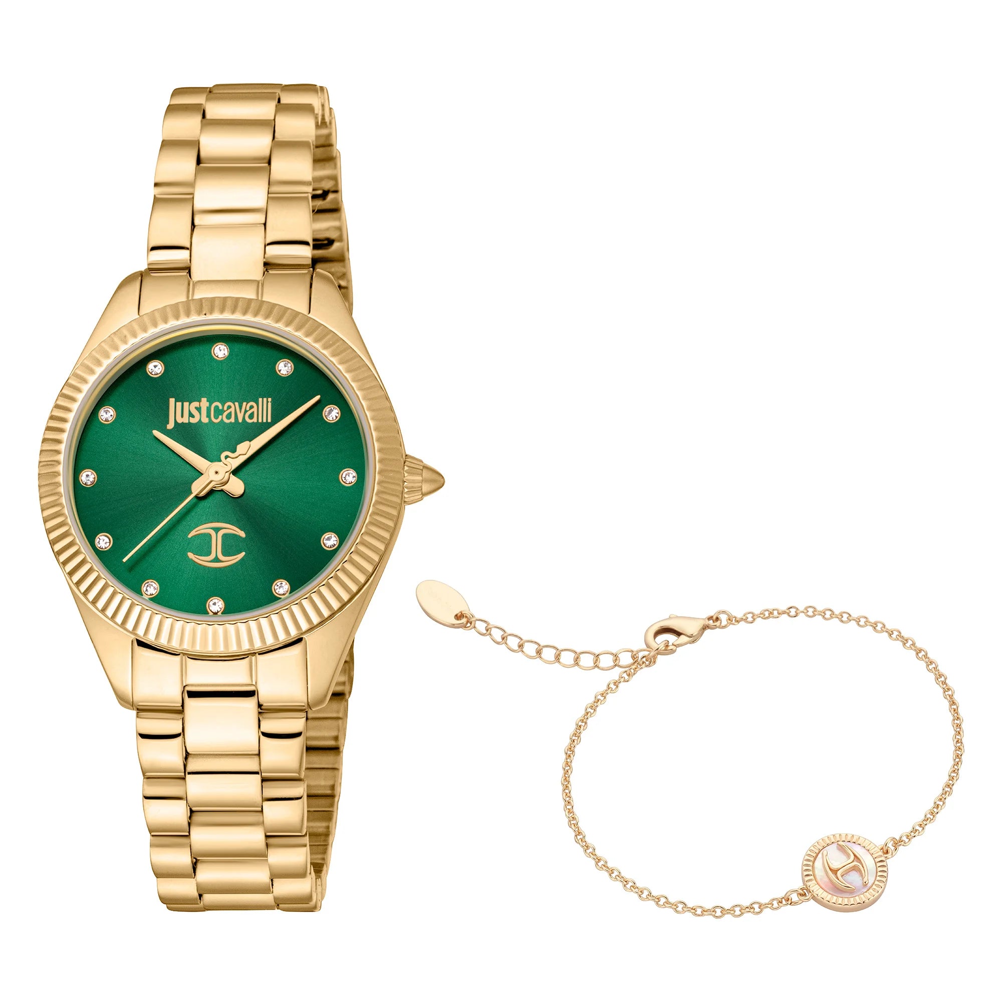 Just Cavalli Glam Chic Pacentro Żółte Złoto Butelkowa Zieleń