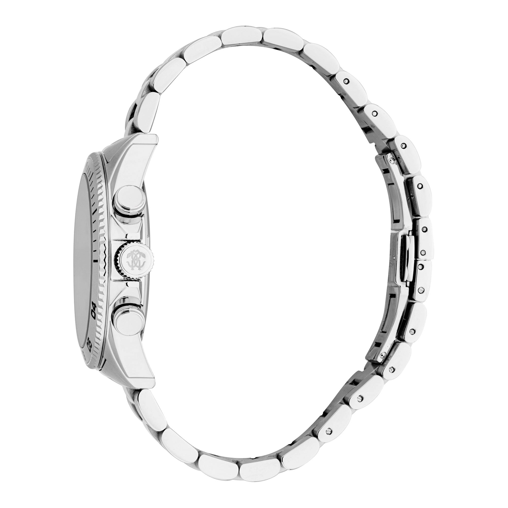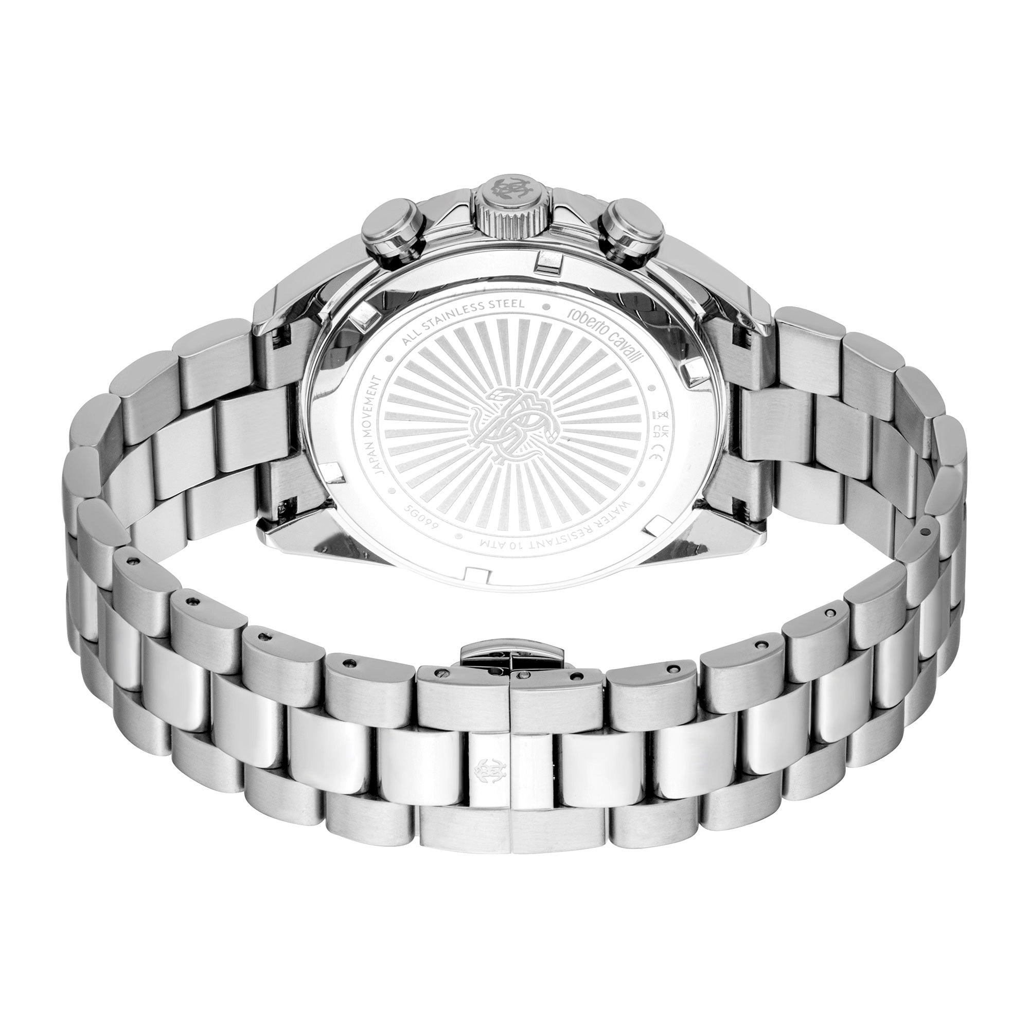 The sophisticated silver grey stainless steel band, 22mm in width, provides exceptional comfort and is secured by a folding deployant clasp with a push-button for effortless wear. Weighing a substantial 153g, it offers a reassuring presence on the wrist. Each Roberto Cavalli Gent watch comes presented in an original Roberto Cavalli black box, ensuring authenticity and making it an impeccable gift. Elevate your style with this blend of luxury, functionality, and iconic Roberto Cavalli design.