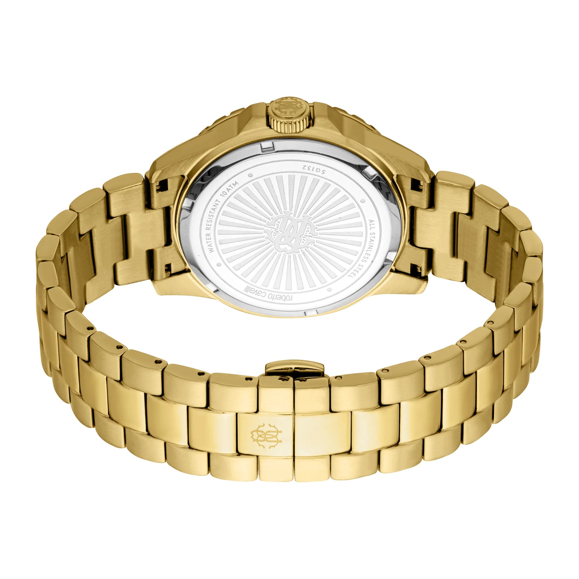 Emanuj luksusem dzięki zegarkowi Roberto Cavalli Gent, wyposażonemu w okrągłą kopertę z żółtego złota i pasującą bransoletę ze stali nierdzewnej. Czarna tarcza, chroniona przez szkło mineralne, oferuje odważny i wyrafinowany wygląd, idealny dla tych, którzy cenią przepych.