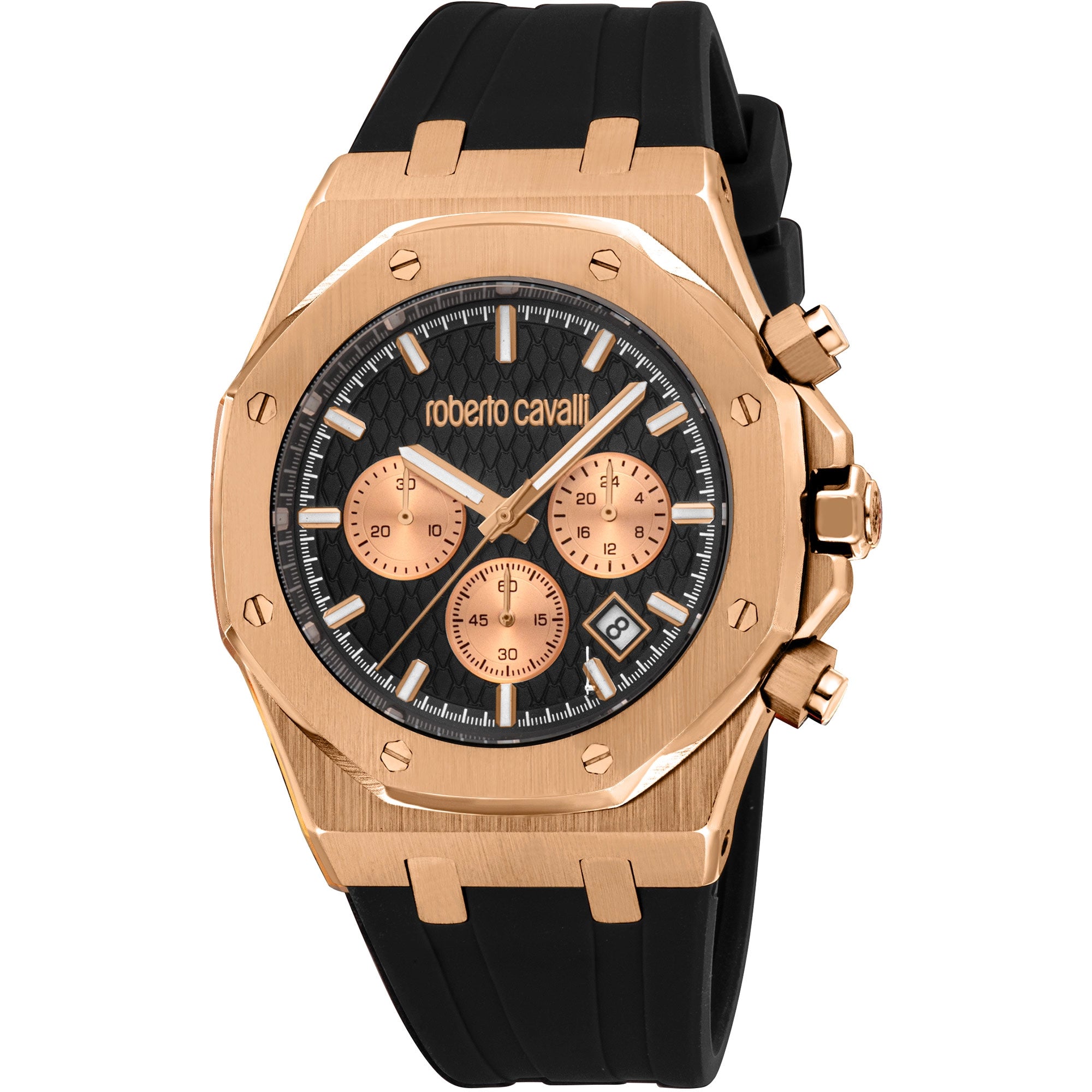 Discover the ultimate blend of fashion and performance. Shop this Roberto Cavalli men's rose gold chronograph watch today at Watchello.com.