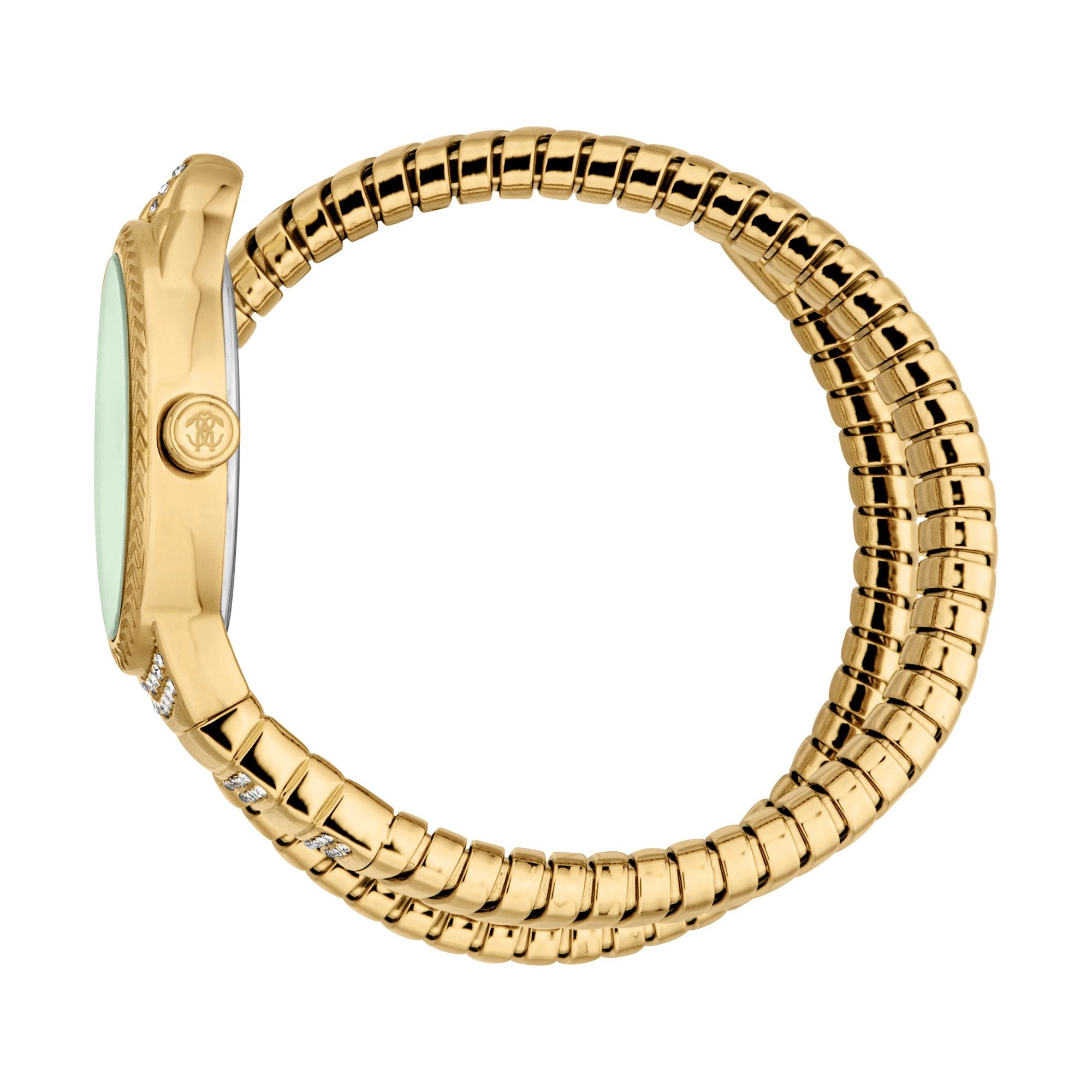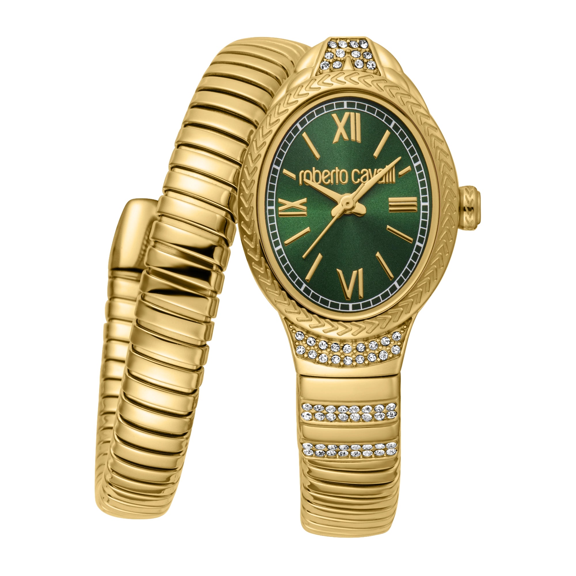 Your Roberto Cavalli Lady watch comes beautifully presented in an original Roberto Cavalli black box, reflecting the brand's commitment to luxury. Perfect as a gift or a personal indulgence, this fashion-forward gold watch with zircons and a unique green dial is a must-have. Discover timeless elegance and shop this exquisite women's watch on Watchello today.