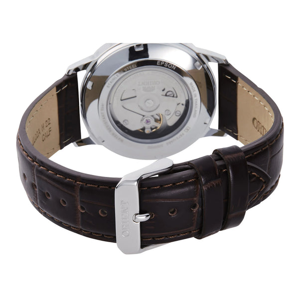 W świecie zegarków, gdzie elegancja spotyka się z funkcjonalnością, ORIENT AC0F Symphony III wyróżnia się jako symbol współczesnego stylu. Wykonany w sercu innowacji zegarmistrzowskiej, ten zegarek jest świadectwem sztuki zegarmistrzostwa, płynnie łącząc tradycję z nowoczesnością. Jego okrągła koperta, skąpana w wyrafinowanym srebrno-szarym kolorze, emanuje ponadczasowym urokiem, który jest zarówno subtelny, jak i przyciągający uwagę. Średnica 41 mm oferuje idealną równowagę, czyniąc go idealnym towarzyszem dla nowoczesnego mężczyzny, który ceni zarówno formę, jak i funkcję. Dzięki wodoodporności do 50 metrów, ten zegarek jest tak wszechstronny, jak stylowy, gotowy towarzyszyć Ci od sali konferencyjnej po plażę. Kryształ mineralny chroni jasnoszary cyferblat, na którym trzy wskazówki tańczą z gracją, napędzane precyzyjnym kalibrem F6722. Ten mechaniczny cud, ozdobiony 22 kamieniami, oferuje zarówno nakręcanie ręczne, jak i automatyczne, zapewniając, że czas zawsze jest po Twojej stronie. Przezroczysty tył odsłania skomplikowane działanie mechanizmu, co z pewnością ucieszy każdego entuzjastę zegarków. Bransoleta ze stali nierdzewnej, dopasowana do koperty w srebrno-szarym odcieniu, wygodnie otula nadgarstek, zabezpieczona zapięciem na sprzączkę. Kalendarz daty dodaje praktyczny akcent, czyniąc ten zegarek nie tylko miernikiem czasu, ale towarzyszem Twoich codziennych przygód. ORIENT AC0F Symphony III to więcej niż zegarek, to wyraz wyrafinowanego designu i współczesnej elegancji, stworzony dla tych, którzy cenią sobie drobne przyjemności życia.
