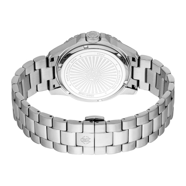 W świecie wyrafinowanych zegarków, gdzie elegancja spotyka się z precyzją, pojawia się dzieło, które ucieleśnia istotę nowoczesnej męskości. Wykonany w sercu szwajcarskiej tradycji zegarmistrzowskiej, ten Roberto Cavalli Watch z renomowanej kolekcji Roberto Cavalli Gent jest świadectwem wyrafinowanego designu i ponadczasowego stylu. Jego okrągła koperta, skąpana w eleganckim srebrno-szarym odcieniu, ma pewne 40 mm średnicy, oferując idealną równowagę między obecnością a subtelnością. Bransoleta ze stali nierdzewnej, dopasowana do koperty w srebrno-szarej elegancji, owija nadgarstek z zapięciem motylkowym, zapewniając zarówno bezpieczeństwo, jak i wygodę noszenia. Pod mineralnym szkłem tarcza w nocnym niebieskim kolorze zachwyca swoim głębokim, tajemniczym urokiem, przypominającym rozgwieżdżone niebo. Analogowy wyświetlacz, napędzany precyzyjnym mechanizmem kwarcowym o kalibrze 2315, gwarantuje niezmienną dokładność odmierzania czasu. Funkcja kalendarza daty dodaje praktyczny akcent temu modnemu elementowi, czyniąc go tak samo funkcjonalnym, jak stylowym. Z wodoodpornością do 100 metrów, ten zegarek to nie tylko dodatek, ale towarzysz życiowych przygód, zarówno na lądzie, jak i na morzu. Koronka typu pull & push oferuje płynną interakcję, pozwalając użytkownikowi na łatwą regulację czasu. Ten Roberto Cavalli Watch to więcej niż zegarek, to wyraz elegancji i odzwierciedlenie wyrafinowanego gustu noszącego, uchwycając ducha współczesnej mody z każdym tyknięciem wskazówek.