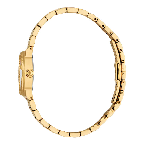 W świecie mody, gdzie elegancja spotyka się z innowacją, pojawia się zegarek, który ucieleśnia istotę wyrafinowania i stylu. Wykonany w sercu szwajcarskiego zegarmistrzostwa, ten zegarek Roberto Cavalli Lady jest świadectwem zaangażowania marki w luksus i precyzję. Jego okrągła koperta, skąpana w bogatym odcieniu żółtego złota, łapie światło przy każdym ruchu, tworząc hipnotyzujący taniec refleksów. Z średnicą koperty 26 mm, leży z gracją na nadgarstku, będąc idealnym towarzyszem nowoczesnej kobiety, która ceni zarówno formę, jak i funkcję. Mineralne szkło chroni srebrno-szarą tarczę, na której trzy wskazówki poruszają się bez wysiłku, napędzane niezawodnym mechanizmem kwarcowym GL32. Ten zegarek to nie tylko miernik czasu, to wyraz wyrafinowanego designu, z wodoodpornością do 50 metrów, zapewniającą odporność na trudy codziennego życia. Bransoleta ze stali nierdzewnej, również w żółtym złocie, oplata nadgarstek z zapięciem motylkowym, oferując zarówno bezpieczeństwo, jak i wygodę noszenia. Mechanizm z przyciskiem dodaje odrobinę nowoczesności jego klasycznemu urokowi. Ten zegarek Roberto Cavalli Lady to więcej niż dodatek, to ucieleśnienie ponadczasowej elegancji, element, który przemawia do serca mody z każdym tyknięciem wskazówek.