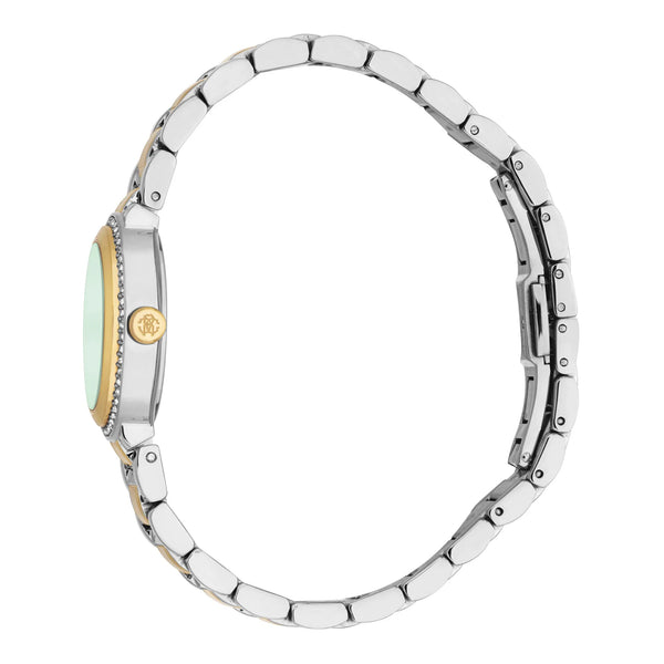W świecie mody, gdzie elegancja spotyka się z innowacją, pojawia się zegarek, który uchwyca istotę wyrafinowania i stylu. Wykonany w sercu szwajcarskiego zegarmistrzostwa, ten zegarek Roberto Cavalli Lady jest świadectwem wyrafinowanego designu i doskonałego rzemiosła. Jego okrągła koperta, skąpana w eleganckim srebrno-szarym odcieniu, otacza hipnotyzującą butelkowo-zieloną tarczę, która wywołuje poczucie głębi i tajemnicy. Tarcza, ozdobiona trzema wskazówkami napędzanymi precyzyjnym mechanizmem kwarcowym, jest płótnem ponadczasowego piękna. Zamknięta w szkle mineralnym, oferuje okno do świata, gdzie czas jest zarówno miarą, jak i inspiracją. Bransoleta ze stali nierdzewnej, olśniewająca w żółtym złocie, owija się wokół nadgarstka z nutą przepychu, zabezpieczona zapięciem motylkowym z przyciskiem dla wygody i elegancji. Z wodoodpornością do 50 metrów, ten zegarek to nie tylko dodatek, ale towarzysz życiowych przygód. Koronka typu pull & push dodaje praktyczności jego luksusowemu designowi. Ważący zaledwie 70 gramów, jest lekkim cudem, który przemawia do nowoczesnej kobiety ceniącej zarówno modę, jak i funkcjonalność. Ten zegarek Roberto Cavalli Lady to więcej niż czasomierz, to wyraz gracji i celebracja sztuki zegarmistrzostwa.