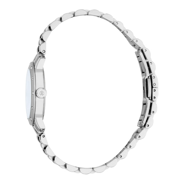 W świecie mody, gdzie elegancja spotyka się z innowacją, pojawia się zegarek, który uchwyca istotę wyrafinowania i stylu. Wykonany w sercu szwajcarskiego zegarmistrzostwa, ten zegarek Roberto Cavalli Lady jest świadectwem wyrafinowanego designu i doskonałego rzemiosła. Jego okrągła koperta, skąpana w lśniącym srebrnoszarym kolorze, otacza tarczę w spokojnym jasnoniebieskim odcieniu, przywodzącą na myśl spokojne piękno czystego nieba. Kryształ mineralny oferuje okno do tego świata elegancji, podczas gdy koronka typu pull & push zapewnia płynną funkcjonalność. Bransoleta ze stali nierdzewnej, również w srebrnoszarym kolorze, owija nadgarstek z gracją, zabezpieczona zapięciem motylkowym z przyciskiem dla wygody i komfortu. Ten zegarek to nie tylko czasomierz, ale także wyraz mody, napędzany precyzyjnym mechanizmem kwarcowym z kalibrem GL32, zapewniającym, że każda chwila jest uchwycona z dokładnością. Dzięki wodoodporności do 50 metrów jest tak wszechstronny, jak piękny, gotowy towarzyszyć Ci od tętniących życiem ulic miasta po spokojne nadmorskie wypady. Jasnoniebieska tarcza dodaje odrobinę stylu pop, czyniąc go idealnym dodatkiem dla tych, którzy odważają się wyróżniać. Ten zegarek Roberto Cavalli Lady to więcej niż dodatek, to ucieleśnienie elegancji, zaprojektowane dla nowoczesnej kobiety, która docenia piękno życia.