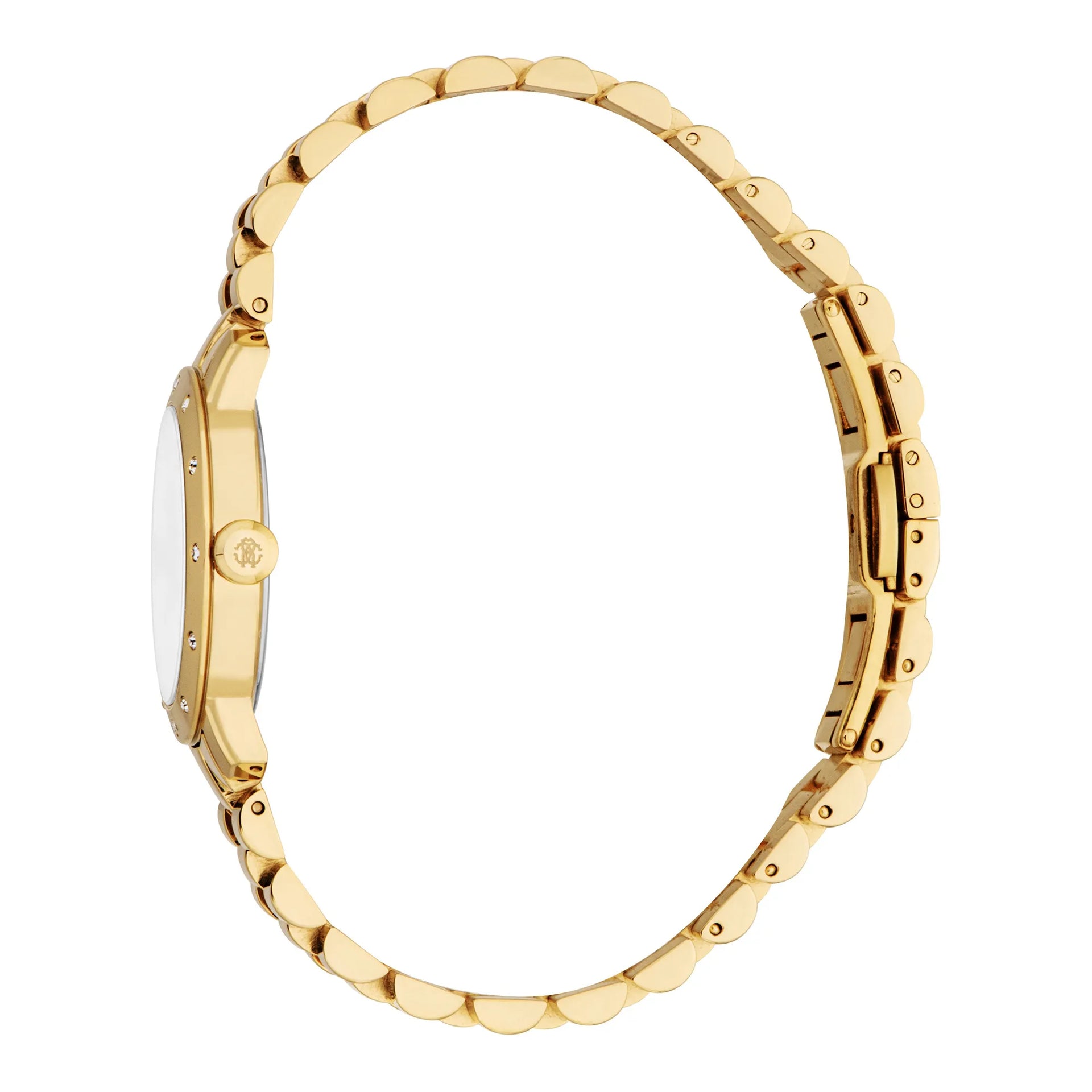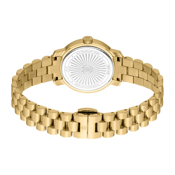 W świecie mody, gdzie elegancja spotyka się z innowacją, pojawia się zegarek, który uchwyca istotę wyrafinowania i stylu. Wykonany w sercu szwajcarskiego zegarmistrzostwa, ten zegarek Roberto Cavalli Lady jest świadectwem wyrafinowanego designu i ponadczasowego uroku. Jego okrągła koperta, skąpana w bogatym blasku żółtego złota, ma delikatne 30 mm, doskonale uzupełniając wdzięczny nadgarstek nowoczesnej kobiety. Mineralne szkiełko odsłania srebrno-szarą tarczę, płótno subtelnego luksusu, gdzie trzy wskazówki tańczą z precyzją, napędzane niezawodnym mechanizmem kwarcowym GL32. Bransoleta ze stali nierdzewnej, również w żółtym złocie, owija nadgarstek z poczuciem ciągłości i elegancji, zabezpieczona zapięciem motylkowym z przyciskiem dla wygody i komfortu. Z wodoodpornością do 50 metrów, ten zegarek to nie tylko modowy akcent, ale wszechstronny towarzysz życiowych przygód. Koronka typu pull & push dodaje klasycznego uroku, zapraszając noszącą go osobę do osobistego i intymnego kontaktu z czasem. Ten zegarek Roberto Cavalli to więcej niż dodatek, to celebracja kobiecości i mody, element, który przemawia do serca tych, którzy odważą się z pewnością i gracją przyjąć swój unikalny styl.