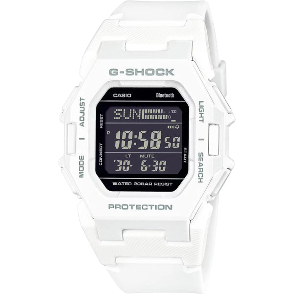 Biały CASIO G-Shock to wizja nowoczesnej elegancji. Jego okrągła koperta o średnicy 41 mm i dopasowany pasek z żywicy oferują smukłą estetykę, podczas gdy czarna tarcza zapewnia uderzający kontrast. Dzięki wodoodporności Diver 200m, jest zaprojektowany dla tych, którzy cenią styl i funkcjonalność.