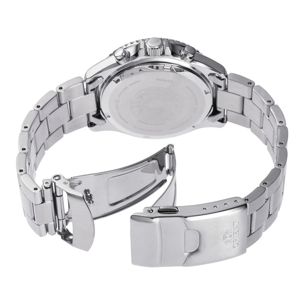 W świecie zegarków, gdzie precyzja spotyka się z pasją, pojawia się dzieło, które uchwyca istotę przygody i elegancji. Wykonany w sercu innowacji zegarmistrzowskiej, ORIENT TX02 Mako Solar Chrono jest świadectwem ducha eksploracji. Dzięki swojej okrągłej kopercie, skąpanej w wyrafinowanym srebrno-szarym odcieniu, ten zegarek jest symbolem stylu i funkcjonalności. Średnica 42 mm oferuje dominującą obecność na nadgarstku, podczas gdy wodoszczelność do 200 metrów dla nurków zapewnia gotowość na każde wodne wyzwanie. Kryształ szafirowy, znany ze swojej przejrzystości i trwałości, chroni żywą tarczę w kolorze karminowej czerwieni, nawiązującą do śmiałości i stylu pop artu. Ten uderzający wybór koloru nie tylko poprawia widoczność, ale także dodaje odrobinę odwagi do stroju noszącego. Bransoleta ze stali nierdzewnej, dopasowana do koperty w srebrno-szarej elegancji, jest zabezpieczona składanym zapięciem motylkowym, wyposażonym w przycisk i blokadę bezpieczeństwa dla dodatkowej ochrony. W sercu tego arcydzieła znajduje się mechanizm solarny, cud nowoczesnej inżynierii, zapewniający, że zegarek pozostaje naładowany i gotowy na każdą przygodę. Wyświetlacz chronografu, napędzany kalibrem VS752, oferuje precyzyjne odmierzanie czasu, podczas gdy funkcje daty i czasu 24-godzinnego zapewniają praktyczność dla nowoczesnego mężczyzny. Ten zegarek ORIENT Sports to nie tylko czasomierz, to towarzysz dla tych, którzy odważają się przekraczać granice i szukać niezwykłości w każdej chwili.