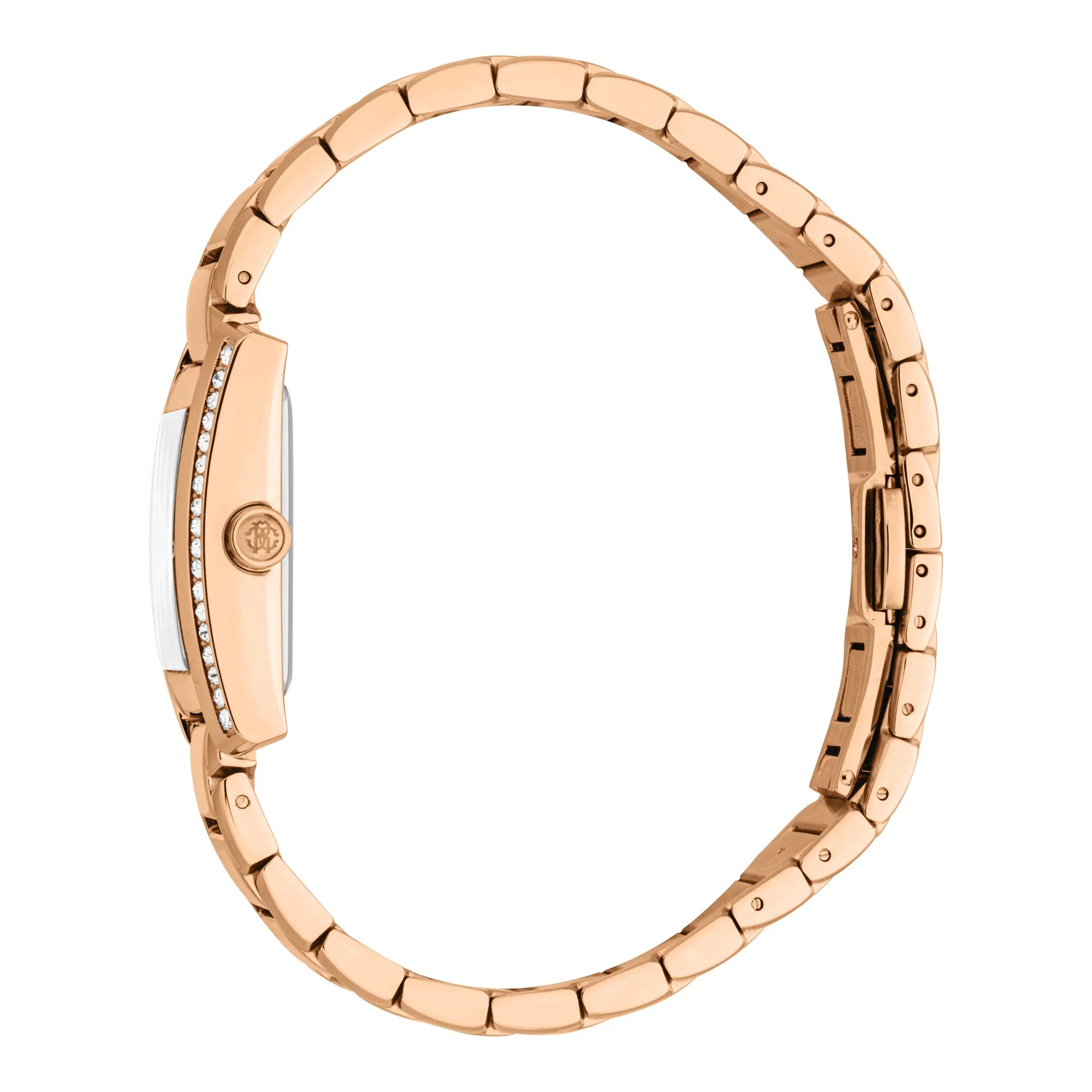 Rozkoszuj się ciepłem różowego złota z zegarkiem Roberto Cavalli Lady. Jego prostokątna koperta i srebrno-szara tarcza tworzą urzekający kontrast, podkreślony przez dopasowaną bransoletę ze stali nierdzewnej. Zapięcie motylkowe zapewnia idealne dopasowanie, a wodoszczelność i mineralne szkło dopełniają tę elegancką całość.