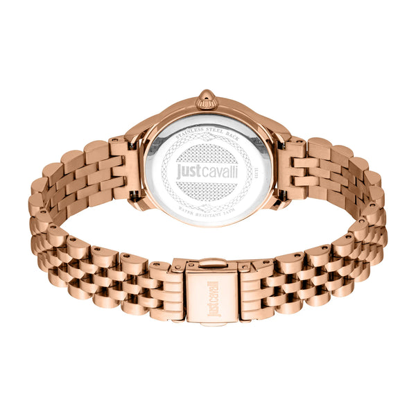 Just Cavalli Allegra w kolorze różowego złota to celebracja nowoczesnej elegancji. Zielona tarcza dodaje odrobinę piękna natury, podczas gdy stalowa bransoleta zapewnia wygodne dopasowanie. Wodoodporny i stylowy, ten zegarek jest idealny dla tych, którzy odważają się wyróżniać.