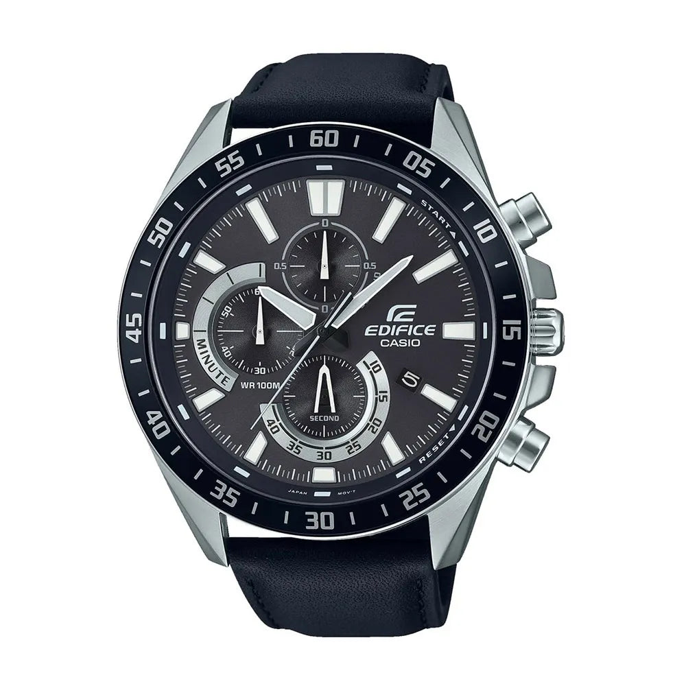 W świecie zegarków, gdzie precyzja spotyka się ze stylem, pojawia się dzieło, które ucieleśnia istotę nowoczesnej męskości. Wykonany w sercu innowacji, zegarek CASIO Edifice jest świadectwem sztuki zegarmistrzostwa, zaprojektowany dla mężczyzny, który ceni zarówno formę, jak i funkcję. Jego okrągła koperta, skąpana w eleganckim srebrno-szarym odcieniu, przyciąga uwagę imponującą średnicą 50 mm, robiąc odważne wrażenie na każdym nadgarstku. Mineralne szkło chroni misterny wyświetlacz chronografu, symfonię precyzji i elegancji, podczas gdy koronka typu pull & push oferuje płynną kontrolę. Wodoodporny do 100 metrów, ten zegarek jest gotowy towarzyszyć Ci w każdej przygodzie, zarówno na lądzie, jak i na morzu. Czarny skórzany pasek, zabezpieczony klamrą typu tang, dodaje klasycznego wyrafinowania, doskonale uzupełniając czarną tarczę, która zawiera kalendarz daty dla większej praktyczności. Napędzany niezawodnym mechanizmem kwarcowym, ten czasomierz zapewnia dokładność i niezawodność. Zegarek CASIO Edifice to nie tylko dodatek, to odzwierciedlenie stylu życia, który łączy swobodę z wyrafinowaniem, gdzie każda chwila jest okazją do zrobienia wrażenia.