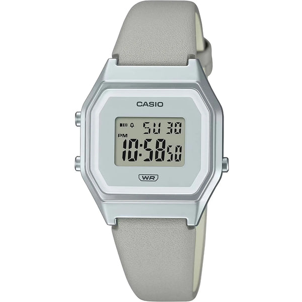 W świecie, gdzie elegancja spotyka się z funkcjonalnością, zegarek CASIO Retro Vintage wyłania się jako ponadczasowy towarzysz nowoczesnej kobiety. Wykonany z wyrafinowanym designem, ten zegarek uchwyca istotę swobodnej elegancji. Jego kwadratowa koperta, skąpana w eleganckim srebrno-szarym odcieniu, emanuje subtelną, lecz uderzającą obecnością na nadgarstku. Średnica 28 mm oferuje idealną równowagę między odwagą a gracją, czyniąc go idealnym dodatkiem na każdą okazję. Jedwabisty szary skórzany pasek, zabezpieczony klasyczną sprzączką, uzupełnia kopertę nutą stonowanego luksusu. Pod plastikowym szkłem kryje się cyfrowy wyświetlacz, który bez wysiłku łączy styl i praktyczność. Srebrno-szara tarcza, przypominająca spokojną noc oświetloną księżycem, jest płótnem innowacji, zawierającym kalendarz dnia, daty i miesiąca. Z mechanizmem kwarcowym w sercu, ten zegarek zapewnia precyzję w każdym tyknięciu. Dodanie chronografu, alarmu, timera i funkcji światła dodaje warstw wszechstronności, czyniąc go prawdziwym towarzyszem dynamicznego stylu życia. Wodoodporny, stoi odporny na żywioły, gotowy towarzyszyć Ci w każdej przygodzie. Ten zegarek CASIO Retro Vintage to nie tylko czasomierz, to wyraz wyrafinowanej elegancji i nowoczesnej funkcjonalności, zaprojektowany, by nadążać za rytmem Twojego życia.