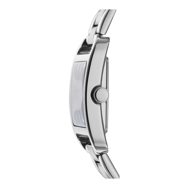 W tętniącym życiem sercu miasta, gdzie moda spotyka się z funkcjonalnością, zegarek DKNY DK1L001 City Maxi wyłania się jako wyraz elegancji i nowoczesności. Wykonany z wyrafinowanym designem, ten czasomierz uchwyca istotę miejskiej wyrafinowania. Jego smukła, prostokątna koperta, skąpana w srebrno-szarym odcieniu, emanuje ponadczasowym urokiem, który uzupełnia żywą fuksjową tarczę, dodając każdemu strojowi odrobinę koloru. Tarcza, z trzema wskazówkami, jest świadectwem precyzji mechanizmu kwarcowego, zapewniając, że czas zawsze jest po twojej stronie. Zamknięty w mineralnym szkle, zegarek jest nie tylko modnym dodatkiem, ale także niezawodnym towarzyszem, oferującym odporność na wodę podczas niespodziewanych miejskich opadów. Bransoleta ze stali nierdzewnej, dopasowana do koperty w srebrno-szarej elegancji, owija się wokół nadgarstka z zapięciem motylkowym, zapewniając zarówno bezpieczeństwo, jak i styl. Mechanizm na przycisk dodaje wygody, ułatwiając zakładanie i zdejmowanie. Zaprojektowany dla nowoczesnej kobiety, która porusza się po mieście z gracją i pewnością siebie, ten zegarek DKNY to coś więcej niż tylko czasomierz, to wyraz indywidualności i stylu. Niezależnie od tego, czy uczestniczysz w ważnym spotkaniu, czy cieszysz się spokojnym brunch'em, zegarek DKNY City Maxi jest twoim idealnym partnerem, odzwierciedlającym żywą energię miasta i odważnego ducha jego właścicielki.