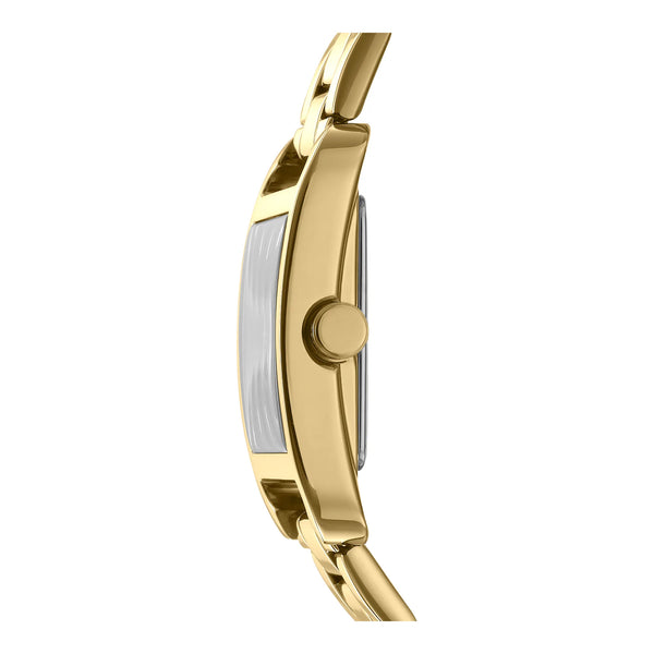 W tętniącym życiem sercu miasta, gdzie moda spotyka się z funkcjonalnością, pojawia się zegarek, który ucieleśnia istotę miejskiej elegancji. Zegarek DKNY City Maxi jest świadectwem dynamicznego stylu życia nowoczesnej kobiety, płynnie łącząc wyrafinowanie z praktycznością. Jego prostokątna koperta, skąpana w luksusowym odcieniu żółtego złota, łapie światło przy każdym ruchu, czyniąc go efektownym dodatkiem na każdą okazję. Średnica koperty 29 mm oferuje idealną równowagę między odwagą a subtelnością, zapewniając, że wyróżnia się bez przytłaczania. Wykonany z precyzją, ten zegarek jest wodoodporny, dając spokój ducha na wypadek niespodziewanych miejskich zachlapań. Kryształ mineralny chroni srebrno-szary cyferblat, na którym trzy wskazówki tańczą z gracją, napędzane niezawodnym mechanizmem kwarcowym. Koronka typu pull & push dodaje klasycznego uroku, podczas gdy stalowa bransoleta, również w żółtym złocie, owija się wokół nadgarstka wyrafinowanym wzorem. Zapięcie motylkowe z przyciskiem zapewnia bezpieczne dopasowanie, pozwalając noszącej poruszać się przez dzień z pewnością i łatwością. Ten zegarek DKNY to nie tylko miernik czasu, to manifest stylu, odzwierciedlenie tętniącego życiem krajobrazu miejskiego i celebracja podróży nowoczesnej kobiety przez życie.