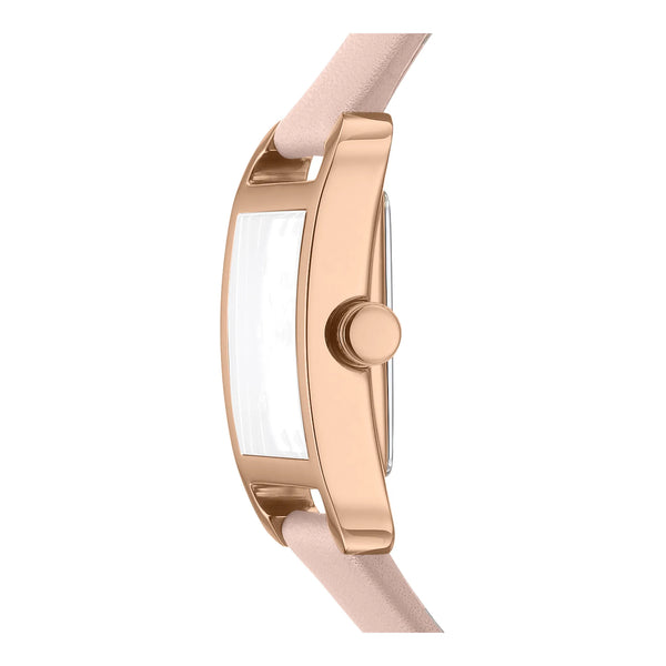 W tętniącym życiem sercu miasta, gdzie moda spotyka się z funkcjonalnością, zegarek DKNY DK1L004 City Midi wyłania się jako symbol miejskiej elegancji. Wykonany w wyrafinowanym prostokątnym kształcie, jego koperta w kolorze różowego złota emanuje ciepłym blaskiem, doskonale uzupełniając żywą energię metropolii. Średnica zegarka wynosząca 27 mm świadczy o jego delikatnej, a zarazem wyrazistej obecności na nadgarstku, czyniąc go idealnym dodatkiem dla nowoczesnej kobiety, która ceni zarówno styl, jak i treść. Srebrno-szara tarcza, z subtelnym połyskiem, oddaje istotę miejskiego krajobrazu o zmierzchu, podczas gdy trzywskazówkowy mechanizm kwarcowy zapewnia precyzję w każdej chwili. Zamknięty w szkle mineralnym, ten czasomierz został zaprojektowany, by wytrzymać trudy codziennego życia, oferując odporność na wodę podczas niespodziewanych miejskich opadów. Koronka typu pull & push dodaje praktyczności, płynnie łącząc się z wyrafinowanym designem zegarka. Różowy skórzany pasek owija się wokół nadgarstka z zapięciem na sprzączkę, zapewniając miękki kontrast do metalicznych odcieni zegarka i dodając akcent kolorystyczny każdej stylizacji. Ten zegarek DKNY to nie tylko dodatek, to manifestacja nowoczesnego myślenia o modzie, ucieleśniająca ducha miasta, które nigdy nie śpi.