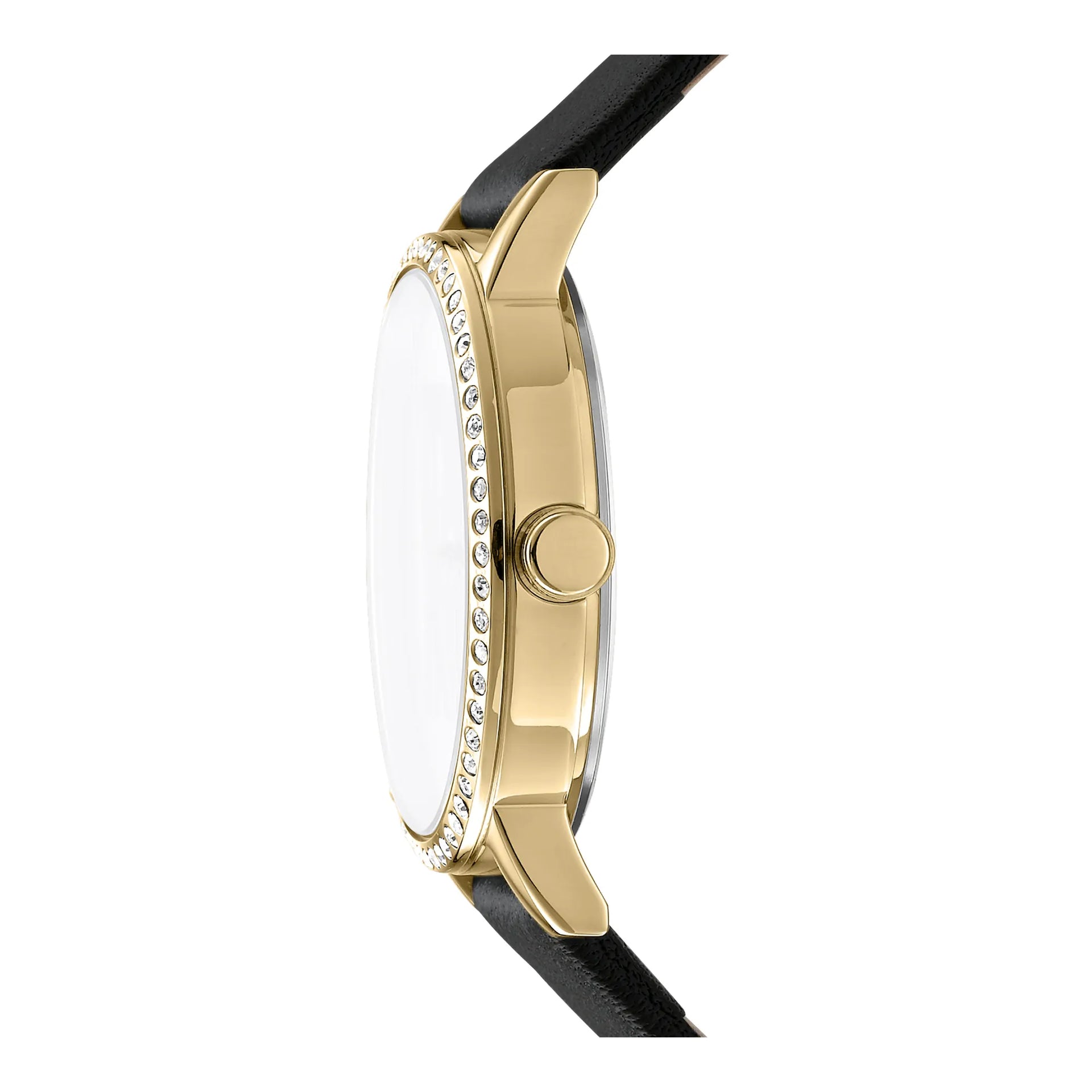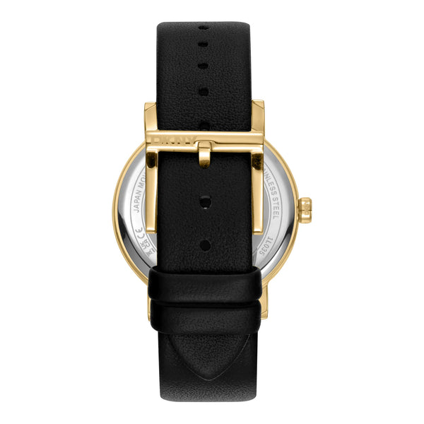 W tętniącym życiem sercu Nowego Jorku, gdzie moda spotyka się z funkcjonalnością, pojawia się zegarek, który ucieleśnia ducha miejskiej elegancji. Zegarek DKNY DK1L035 Soho Logo jest świadectwem dynamicznego stylu życia nowoczesnej kobiety, płynnie łącząc wyrafinowanie z praktycznością. Jego okrągła koperta, skąpana w luksusowym odcieniu żółtego złota, uchwyca istotę ponadczasowego blasku, podczas gdy średnica 36 mm zapewnia idealną równowagę między odwagą a subtelnością. Wykonany z wyrafinowanym wzornictwem, ten zegarek jest wodoodporny do 50 metrów, co czyni go tak wszechstronnym, jak stylowym. Mineralne szkiełko chroni srebrno-szarą tarczę, na której trzy wskazówki tańczą z gracją, napędzane precyzyjnym mechanizmem kwarcowym. Koronka typu pull & push dodaje klasycznego uroku, zapraszając do łatwej regulacji czasu. Czarny skórzany pasek, zabezpieczony klamrą z bolcem, wygodnie owija się wokół nadgarstka, oferując elegancki kontrast dla złotej koperty. Ten modny dodatek to coś więcej niż zegarek, to wyraz indywidualności i gracji, zaprojektowany dla kobiety, która porusza się po świecie z pewnością siebie i wdziękiem. Niezależnie od tego, czy uczestniczysz w ważnym spotkaniu, czy delektujesz się spokojnym brunch'em, ten zegarek DKNY jest idealnym towarzyszem, odzwierciedlającym żywą energię i wyrafinowanie miasta, które nigdy nie śpi.