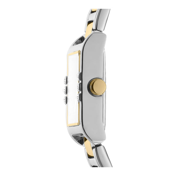 W tętniącym życiem sercu miasta, gdzie moda spotyka się z funkcjonalnością, DKNY DK1L008 Westside Glitz wyłania się jako symbol elegancji i nowoczesności. Wykonany z precyzją, ten zegarek jest świadectwem wyrafinowanego stylu współczesnej kobiety. Jego prostokątna koperta, pokryta eleganckim srebrno-szarym kolorem, oddaje istotę miejskiego szyku, podczas gdy butelkowo zielona tarcza dodaje nutę tajemniczości i głębi, przypominając spokojny las ukryty w betonowej dżungli. Bransoleta ze stali nierdzewnej, również w srebrno-szarym odcieniu, otula nadgarstek z wyrafinowaną gracją, zabezpieczona zapięciem motylkowym z przyciskiem dla wygody i komfortu. Mineralne szkło chroni tarczę, zapewniając przejrzystość i trwałość, podczas gdy koronka typu pull & push umożliwia płynną regulację. Napędzany niezawodnym mechanizmem kwarcowym, ten zegarek obiecuje precyzję i niezawodność, czyniąc go niezbędnym towarzyszem kobiety, która porusza się po swoim świecie z pewnością siebie i wdziękiem. Wodoodporny, jest odporny na niespodziewane sytuacje, ucieleśniając ducha miasta, które nigdy nie śpi. DKNY Westside Glitz to nie tylko zegarek, to manifest stylu, odzwierciedlenie wewnętrznej siły i elegancji noszącej go osoby, idealnie dopasowany do tych, którzy odważnie łączą modę z funkcjonalnością w codziennym życiu.