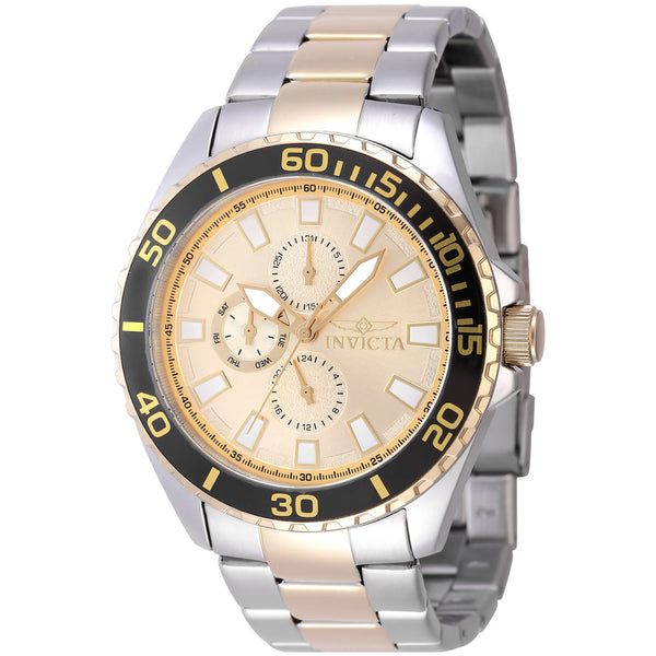 W świecie zegarków, gdzie elegancja spotyka się z funkcjonalnością, Invicta Pro Diver wyróżnia się jako symbol stylu i precyzji. Wykonany w wyrafinowanym designie, ten zegarek jest świadectwem sztuki zegarmistrzowskiej, płynnie łącząc codzienną wyrafinowaną prostotę z praktycznością. Okrągła koperta, pokryta eleganckim srebrno-szarym kolorem, przyciąga uwagę imponującą średnicą 46 mm, robiąc odważne wrażenie na każdym nadgarstku. Jego pasek ze stali nierdzewnej w kolorze żółtego złota, zabezpieczony składanym zapięciem motylkowym z blokadą bezpieczeństwa, dodaje odrobinę przepychu, zapewniając jednocześnie komfort i bezpieczeństwo. Tarcza, promieniująca żółtym złotem, oddaje istotę luksusu, podczas gdy wielofunkcyjny wyświetlacz, napędzany precyzyjnym mechanizmem kwarcowym, oferuje funkcje dnia i daty, zapewniając stylowe dotrzymywanie kroku harmonogramowi. Kryształ Hardlex zapewnia wyraźny widok tarczy, a koronka typu pull & push umożliwia łatwe regulacje. Z wodoodpornością do 50 metrów, ten zegarek jest tak wszechstronny, jak elegancki, gotowy towarzyszyć Ci od sali konferencyjnej po plażę. Invicta Pro Diver to nie tylko zegarek, to wyraz wyrafinowanego gustu i ponadczasowej elegancji, idealny dla nowoczesnego mężczyzny, który ceni zarówno formę, jak i funkcję.