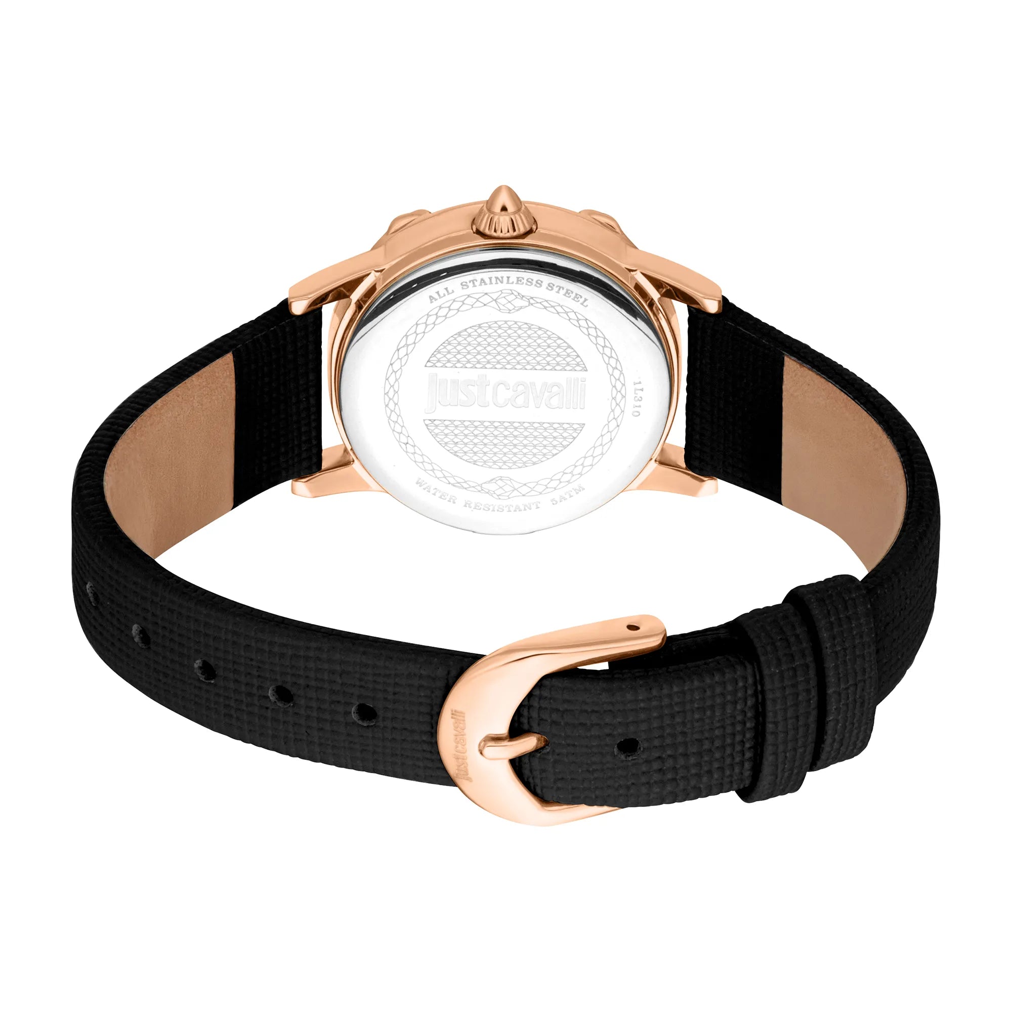 Just Cavalli Animalier Fiorenza Skórzany czarny wąż RG srebrny