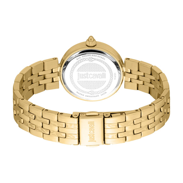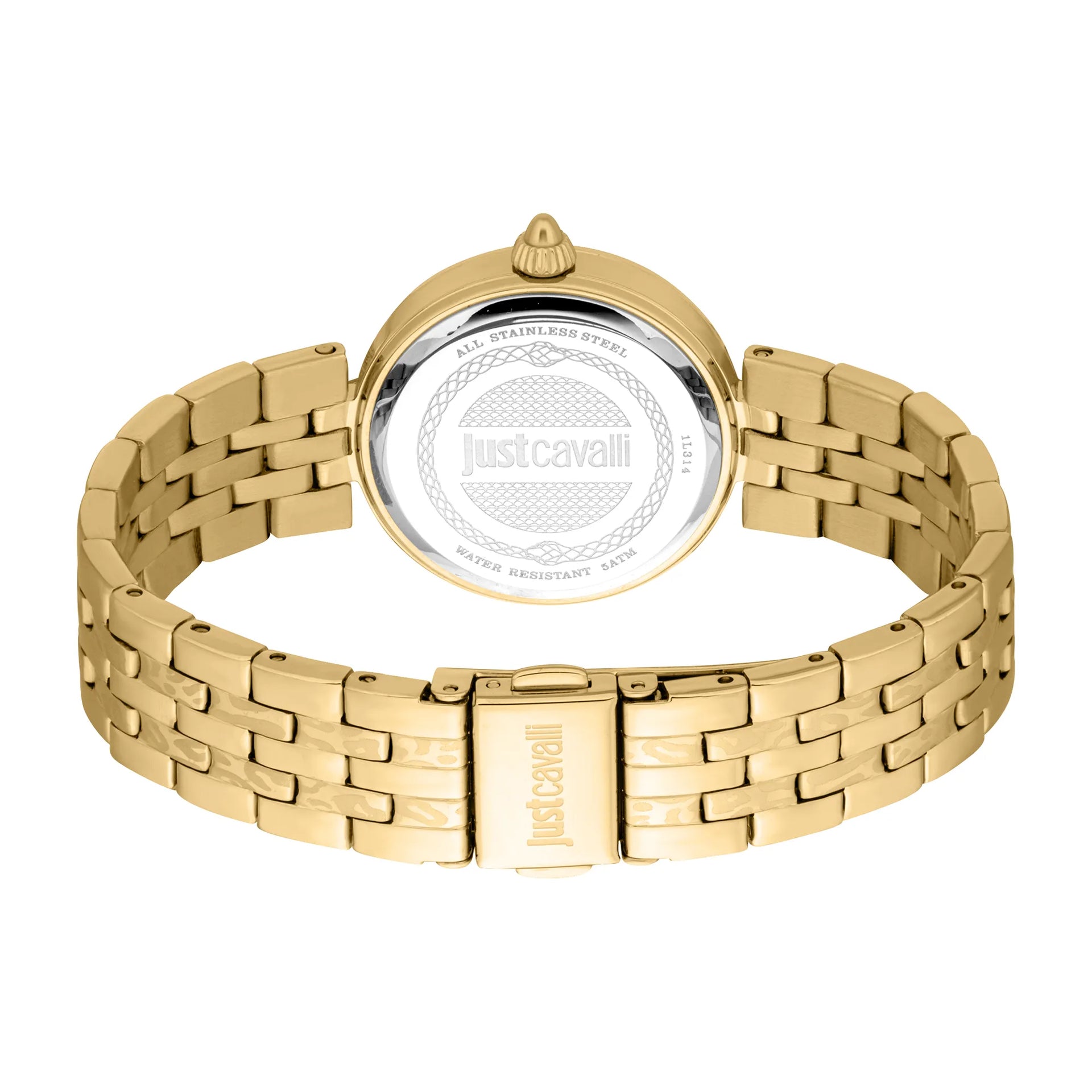 Rozkoszuj się złotym blaskiem Just Cavalli Preziosa, gdzie elegancja spotyka się z nowoczesnością. Żółte złoto koperty i bransolety otacza srebrno-szarą tarczę, tworząc harmonijne połączenie luksusu i stylu. Ten zegarek jest świadectwem ponadczasowej wyrafinowania.