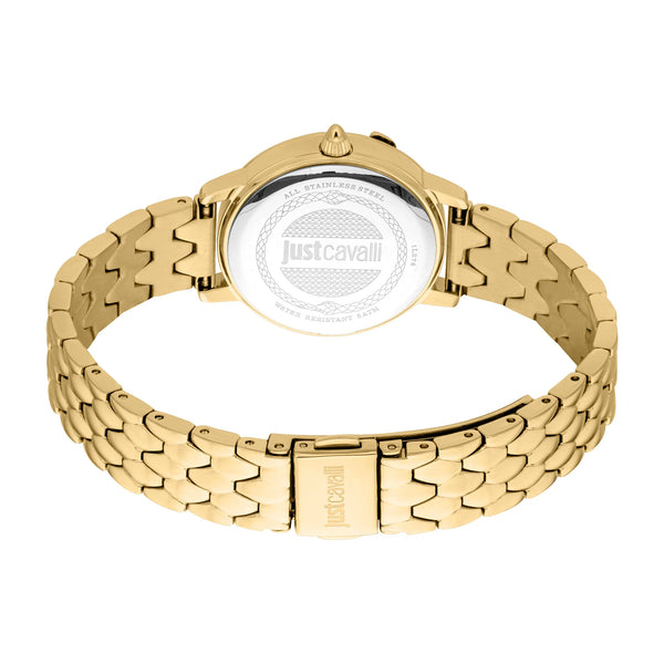 W świecie modnych zegarków, Just Cavalli Watch z kolekcji Signature Snake wyróżnia się jako symbol odwagi i charakteru. Wykonany w sercu szwajcarskiej tradycji zegarmistrzowskiej, ten wykwintny egzemplarz uchwyca istotę odważnej elegancji. Okrągła koperta, skąpana w luksusowym odcieniu żółtego złota, emanuje poczuciem przepychu i wyrafinowania, doskonale uzupełniając wyrafinowany design. Z średnicą koperty 30 mm, zegarek z gracją układa się na nadgarstku, robiąc wrażenie bez przytłaczania. Bransoleta ze stali nierdzewnej, również w żółtym złocie, dodaje ponadczasowego uroku, zabezpieczona zapięciem motylkowym z przyciskiem dla wygody i komfortu. Turkusowa tarcza, żywy akcent koloru, wprowadza styl pop, który jest zarówno śmiały, jak i szykowny, zapraszając noszącą ją osobę do wyrażenia swojej unikalnej osobowości. Pod mineralnym szkłem, mechanizm kwarcowy z trzema wskazówkami zapewnia precyzję i niezawodność, podczas gdy koronka typu pull & push oferuje płynną funkcjonalność. Z wodoodpornością do 50 metrów, ten zegarek jest tak wszechstronny, jak stylowy, gotowy towarzyszyć Ci od tętniących życiem ulic miasta po spokojne nadmorskie wypady. Zaprojektowany dla nowoczesnej kobiety, która nie boi się wyrażać swojej indywidualności, Just Cavalli Watch to więcej niż zegarek, to deklaracja osobistego stylu i pewności siebie, świadectwo nieustraszonego ducha tych, którzy odważają się wyróżniać.