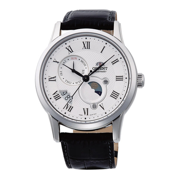 W dziedzinie zegarmistrzostwa, gdzie czas jest zarówno nauką, jak i sztuką, ORIENT Classic AK00 Sun & Moon pojawia się jako świadectwo ponadczasowej elegancji i mechanicznej doskonałości. Wykonany z precyzją, ten zegarek to harmonijne połączenie tradycji i innowacji, zaprojektowany dla wymagającego dżentelmena, który docenia drobne przyjemności życia. Jego okrągła koperta, skąpana w wyrafinowanym srebrno-szarym kolorze, kryje świat skomplikowanych mechanizmów widocznych przez przezroczysty tył, zapraszając do podziwiania tańca jego 22 kamieni. Biała tarcza, będąca płótnem czystości, ozdobiona jest kalendarzem dni i dat, oferując spojrzenie na niebiański balet słońca i księżyca. Ten klasyczny czasomierz to nie tylko odmierzanie czasu, to jego doświadczanie. Mechaniczny mechanizm, napędzany kalibrem F6B24, zapewnia dokładność z dzienną precyzją +25/-15 sekund, podczas gdy opcja zarówno ręcznego nakręcania, jak i automatycznego ruchu odpowiada preferencjom konesera. Zamknięty w szafirowym szkle, zegarek jest twierdzą przeciwko żywiołom, oferując wodoodporność do 50 metrów. Czarny skórzany pasek, zabezpieczony składanym zapięciem motylkowym z przyciskiem, otula nadgarstek obietnicą komfortu i stylu. Ten zegarek ORIENT to więcej niż dodatek, to wyraz wyrafinowanego gustu i towarzysz dla tych, którzy poruszają się po świecie z gracją i pewnością siebie.