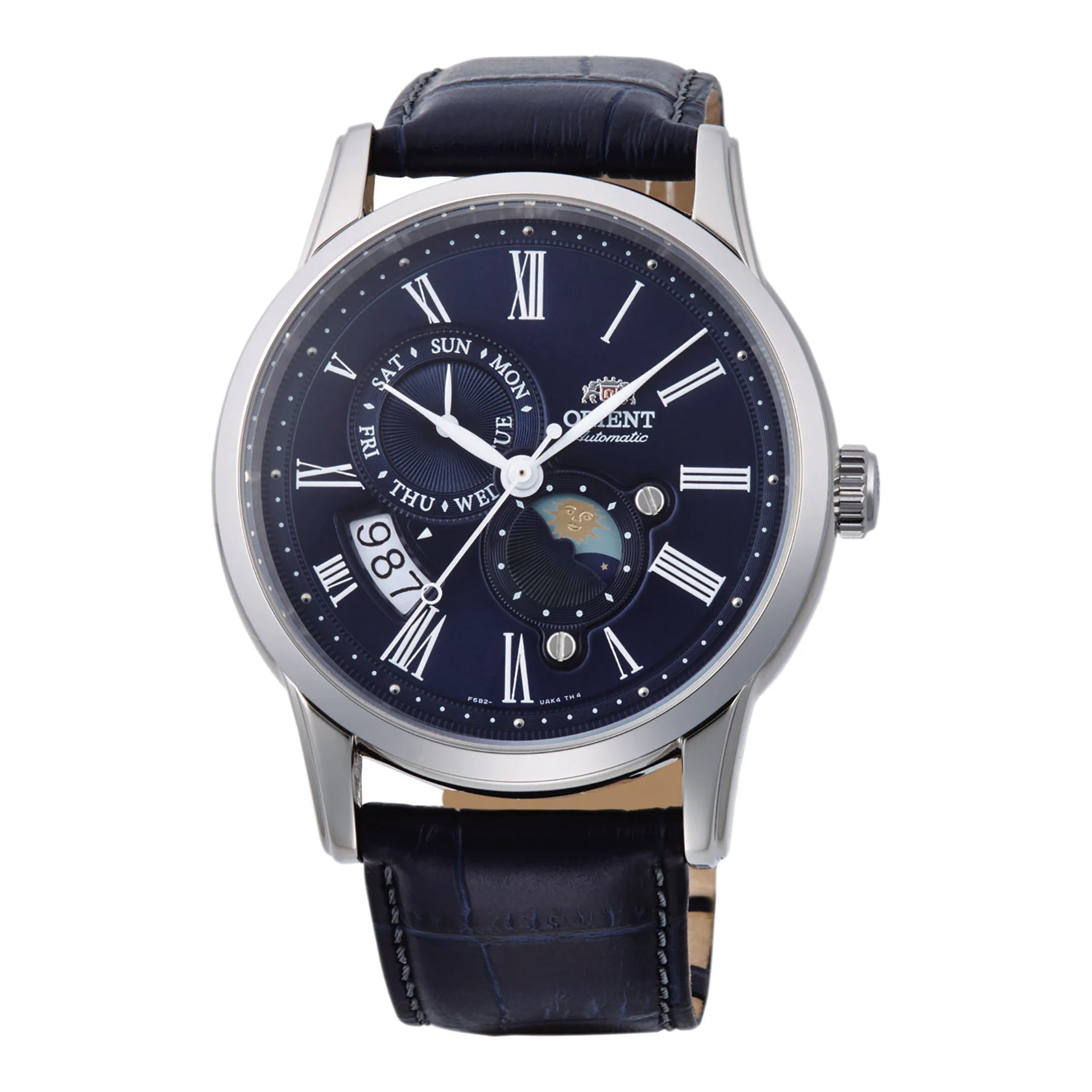 W dziedzinie zegarmistrzostwa, gdzie czas jest zarówno mistrzem, jak i muzą, pojawia się arcydzieło, które uchwyca istotę klasycznej elegancji i mechanicznej precyzji. Wykonany w sercu innowacji, zegarek ORIENT Classic AK00 Sun & Moon jest świadectwem ponadczasowej wyrafinowania. Jego okrągła koperta, skąpana w srebrno-szarym odcieniu, emanuje subtelną, lecz dominującą obecnością, doskonale uzupełniając głęboko niebieski skórzany pasek, który owija nadgarstek z poczuciem wyrafinowanego luksusu. Szafirowa tarcza odsłania fascynujący niebieski cyferblat, gdzie rozgrywa się taniec słońca i księżyca, oferując poetycki wgląd w upływ czasu. Ten zegarek to nie tylko dodatek, to wyraz stylu i treści, zaprojektowany dla wymagającego dżentelmena, który docenia sztukę zegarmistrzostwa. Z średnicą koperty 42 mm, osiąga harmonijną równowagę między odwagą a elegancją, podczas gdy przezroczysty tył oferuje okno na skomplikowany mechaniczny mechanizm napędzany kalibrem F6B24. 22 kamienie wewnątrz zapewniają płynną i precyzyjną pracę, z dzienną dokładnością +25/-15, czyniąc go niezawodnym towarzyszem na każdą okazję. Wodoodporny do 50 metrów, jest tak wszechstronny, jak piękny, gotowy towarzyszyć Ci od spotkań w sali konferencyjnej po wieczorne przyjęcia. Składane zapięcie motylkowe z zamknięciem na przycisk zapewnia bezpieczne dopasowanie, podczas gdy koronka typu pull & push umożliwia bezwysiłkowe regulacje. Z możliwością ręcznego nakręcania i automatycznego naciągu, ten zegarek jest celebracją rzemiosła i innowacji, prawdziwym ucieleśnieniem dziedzictwa ORIENT.