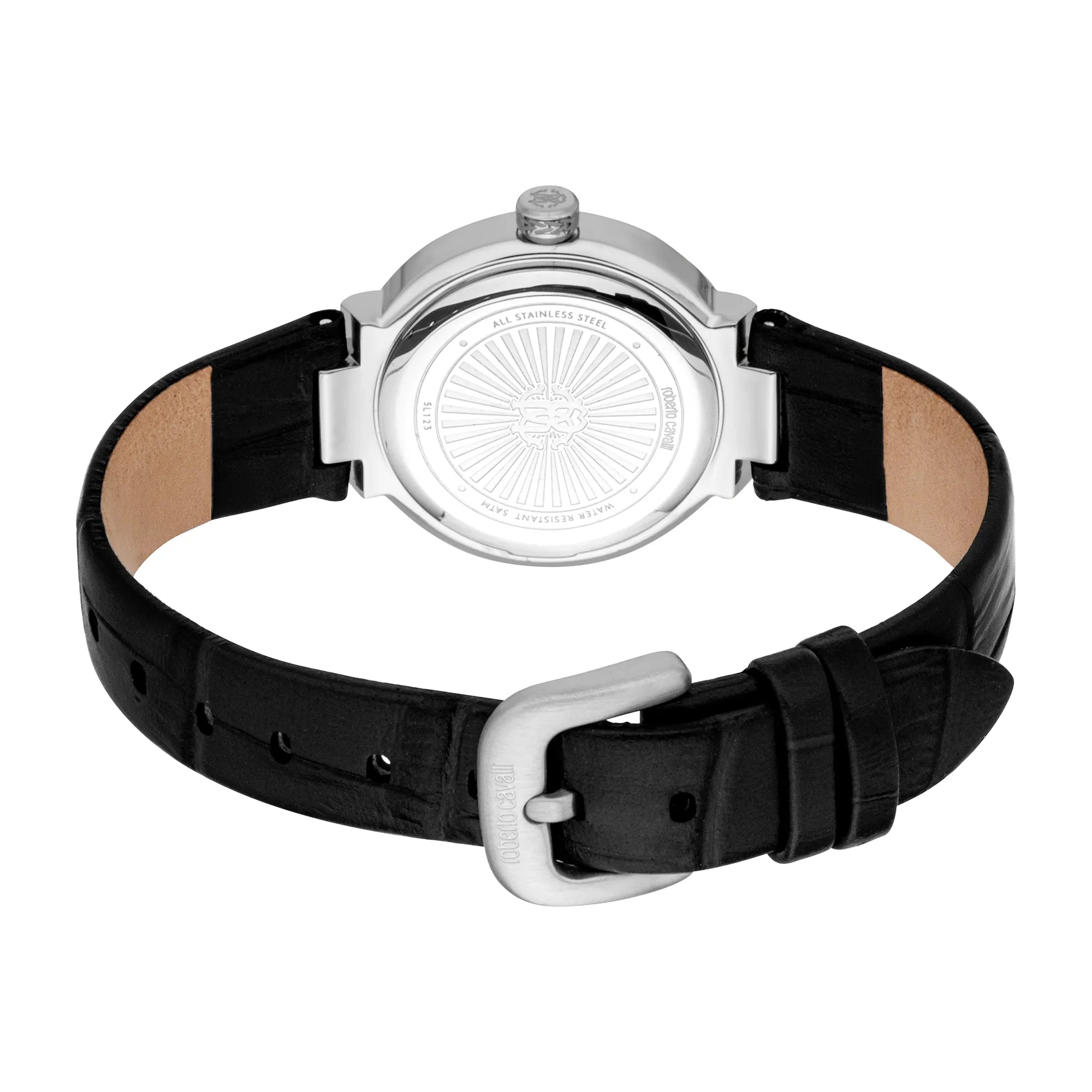 W świecie mody, gdzie elegancja spotyka się z precyzją, pojawia się zegarek, który ucieleśnia istotę wyrafinowania i stylu. Wykonany w sercu szwajcarskiego zegarmistrzostwa, ten zegarek Roberto Cavalli Lady jest świadectwem wyrafinowanego designu i ponadczasowego uroku. Jego okrągła koperta, skąpana w lśniącym srebrno-szarym kolorze, łapie światło przy każdym ruchu, podczas gdy średnica 28 mm oferuje delikatną, a zarazem uderzającą obecność na nadgarstku. Mineralne szkło chroni tarczę, zapewniając klarowność i trwałość, a koronka typu pull & push umożliwia płynne regulacje. Wewnątrz znajduje się niezawodny mechanizm kwarcowy, napędzany kalibrem GL34, który precyzyjnie kieruje ruchem trzech wskazówek na srebrno-szarej tarczy. Czarny skórzany pasek, zabezpieczony klamrą typu tang, otula nadgarstek komfortem i stylem, czyniąc go wszechstronnym dodatkiem na każdą okazję. Z wodoodpornością do 50 metrów, ten zegarek to nie tylko modowy akcent, ale towarzysz życiowych przygód. Harmonijne połączenie srebra i czerni emanuje klasycznym urokiem, podczas gdy staranne rzemiosło świadczy o dziedzictwie doskonałości marki. Ten zegarek Roberto Cavalli Lady to więcej niż czasomierz, to symbol gracji i nowoczesnej kobiecości, zaprojektowany dla kobiety, która docenia drobne przyjemności życia i nie boi się wyrażać siebie poprzez swoje akcesoria.